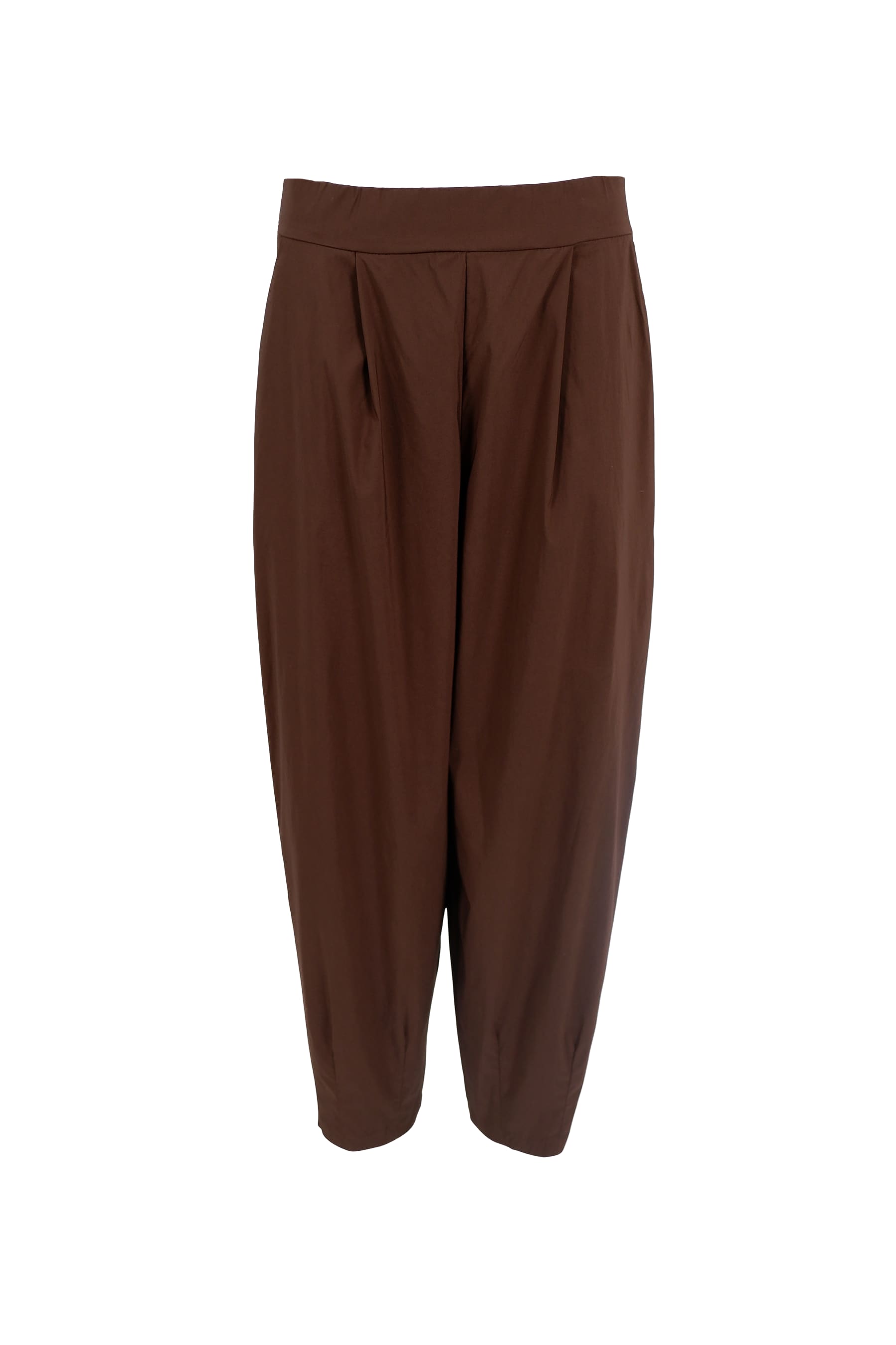 Lækre ballonbukser fra Black Colour i sæsonens hotte farve. De chokoladebrune bukser har elastik og bred kant ved linningen, så bukserne sidder godt. Det bløde og lette materiale gør buksen behagelig at have på, så du nemt kan bruge den som en sommerbuks med en hvid top. Prøv fx. den søde Debra top fra Marta du Château i off white.Bemærk: buksen er stor i størrelsen. Flere vælger at gå en størrelse ned.Mål S/M:½ Waist (relaxed): 38 cm.½ Waist (stretched): 42 cm. Inseam: 67 cm.