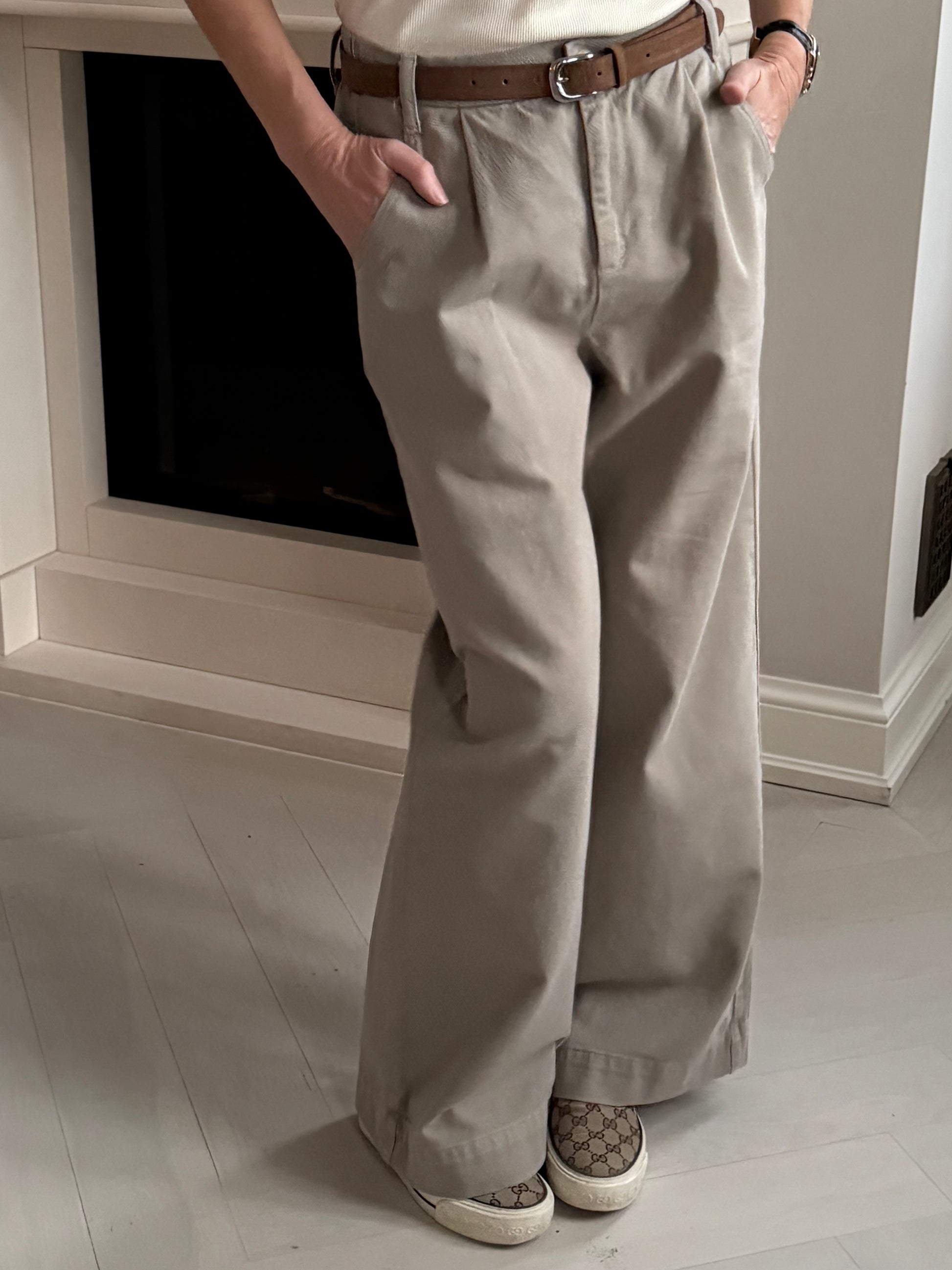 Brune bukser med blå skjorte