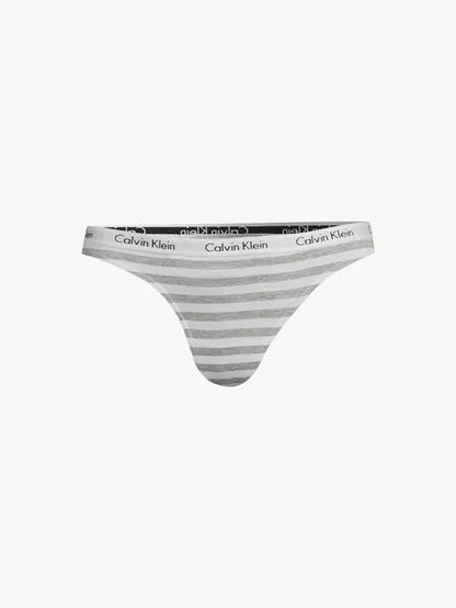 Stribet g-streng trusse fra Calvin Klein med grå og hvide striber. G-strengen har den ikoniske logo elastik i linningen, som vi kan kende Calvin Kleins trusser på.