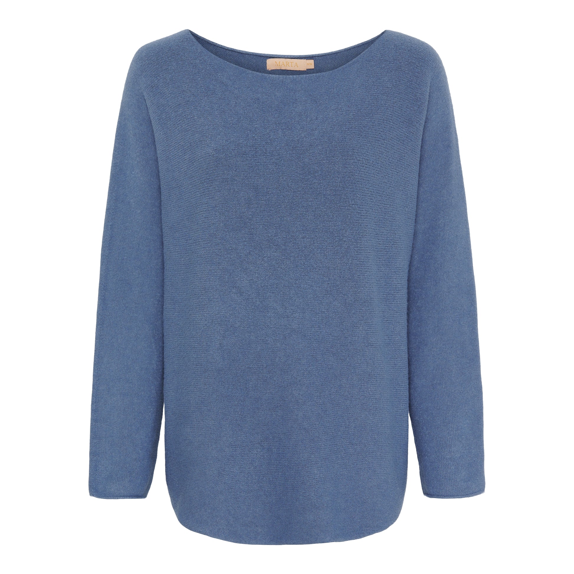 Lækker, blå strikbluse fra Marta du Château. Blusen har lange ærmer og en flot bådudskæring. Perfekt til dine jeans eller et par hvide bukser i sommersæsonen.