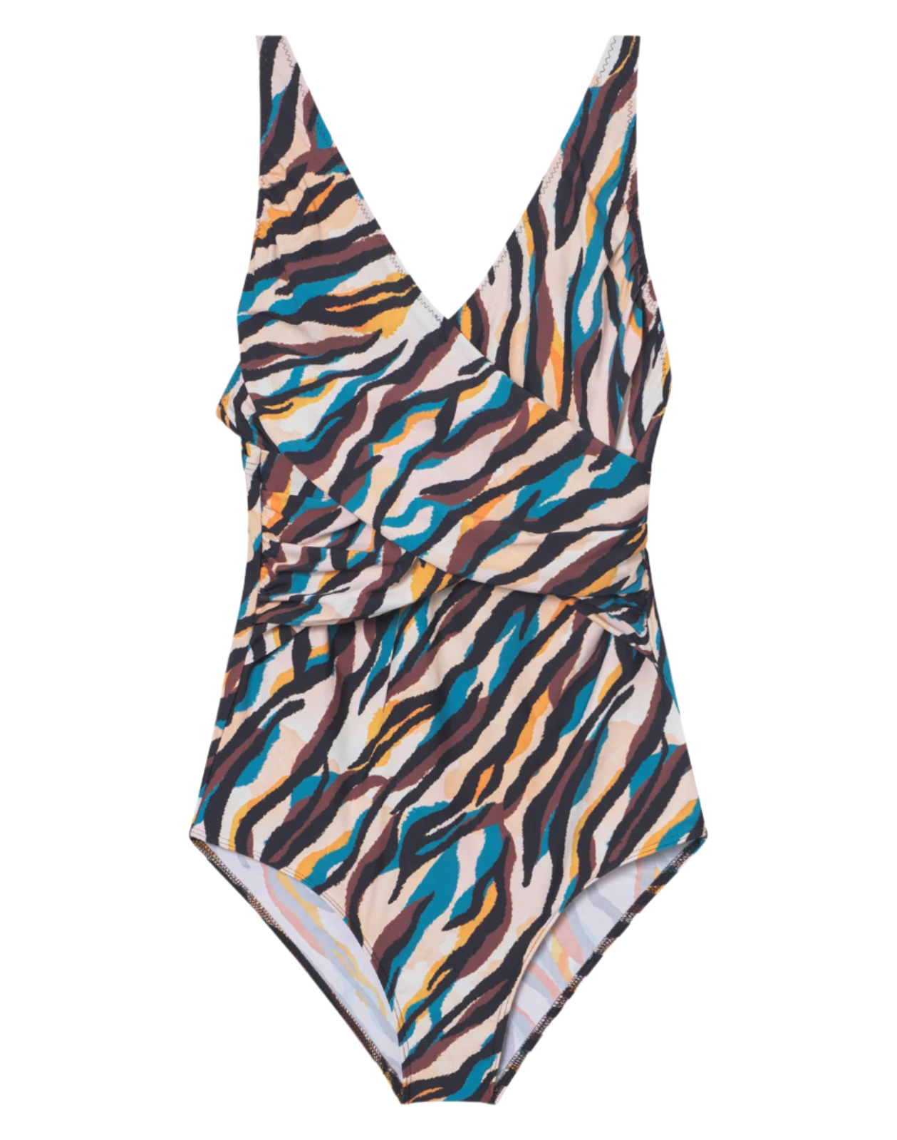 Monterey er en lækker badedragt fra Saltabad med mønster i fine farver. Badedragten er skåret over Dolores modellen med fine draperinger henover brystet, der giver en slankende effekt. Stropperne kan justeres bagpå, hvor badedragten også lukkes med hægte. Benudskæringen er til den lave side, så du får god dækning af bagdelen.