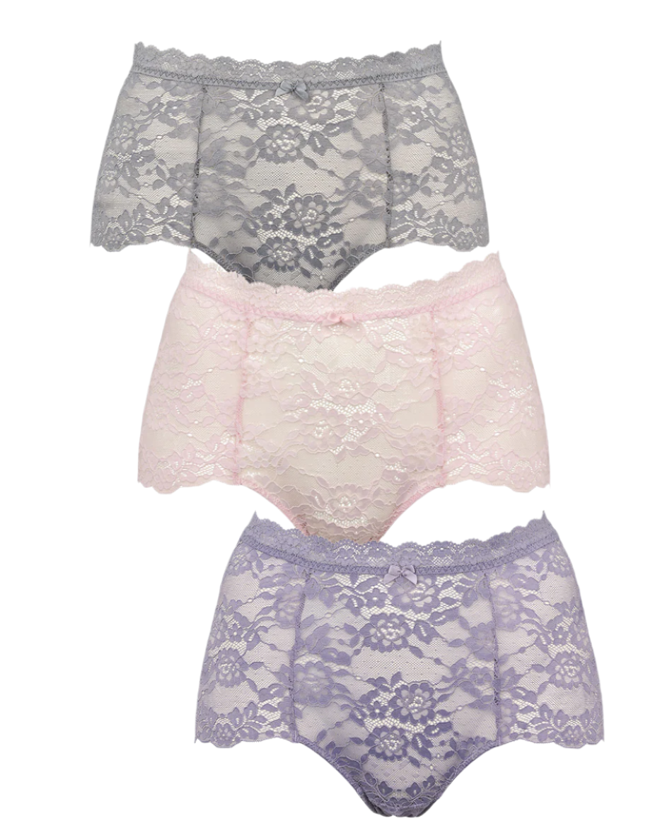 Skøn maxitrusse fra Missya i helblonde. Trussen har en let bølget kant langs benudskæringen, som gør at den lægger sig helt ind til huden, så du får den eftertragtede seamless effekt. I denne 3-pak får du en lilla, rosa og grå trusse. Maxitrussen er højtaljet og dækker derfor også det nederste af maven. Denne maxi trusse er lille i størrelsen. Vi anbefaler, at du vælger en størrelse større i forhold til din normale størrelse.