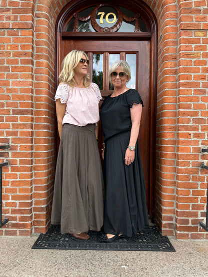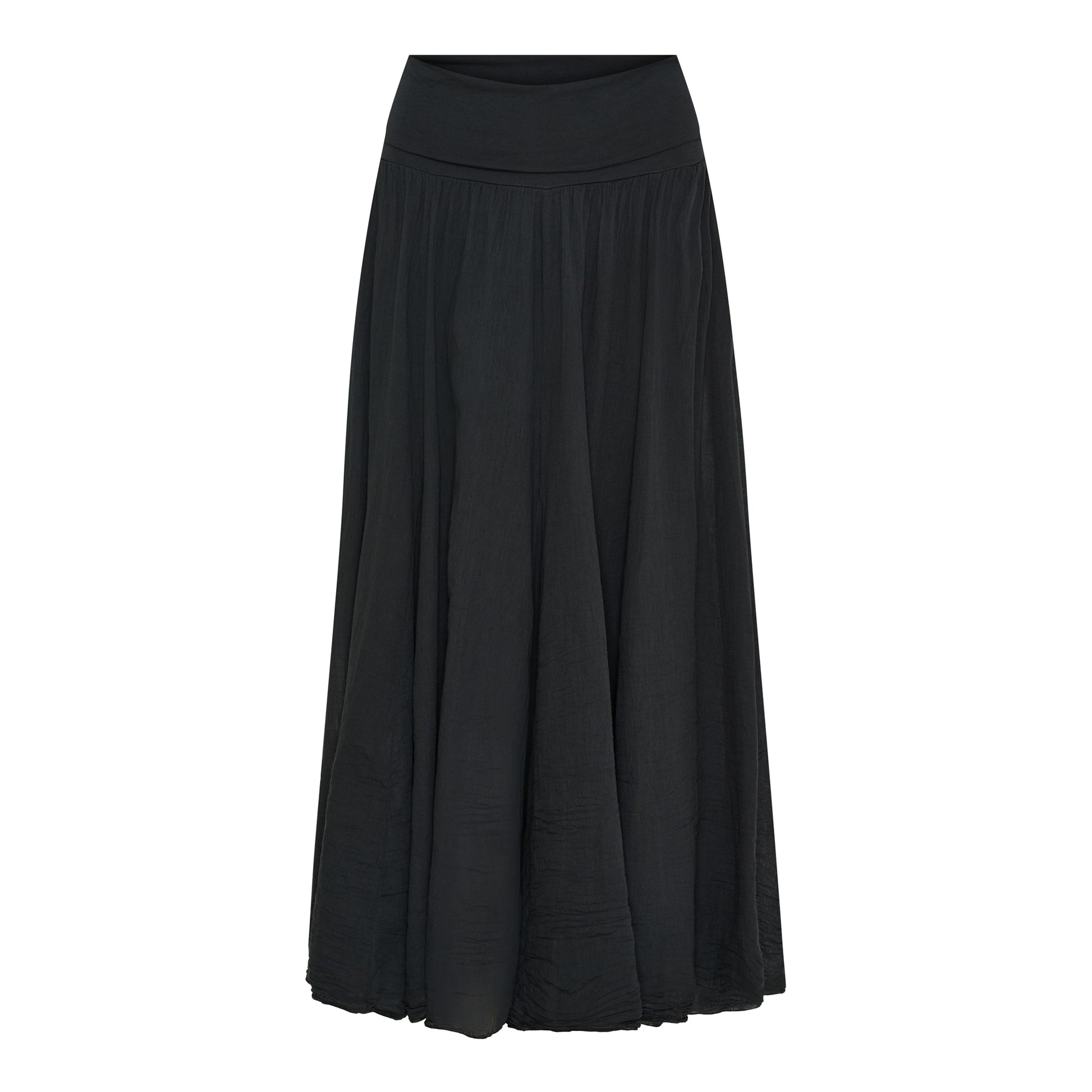 Sort nederdel fra Marta du Château med bredt elastikstykke i linningen, der kan foldes ned. Style med sød bluse - enten tone i tone eller vælg en kontrastfarve og sæt fokus på dit outfit.