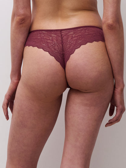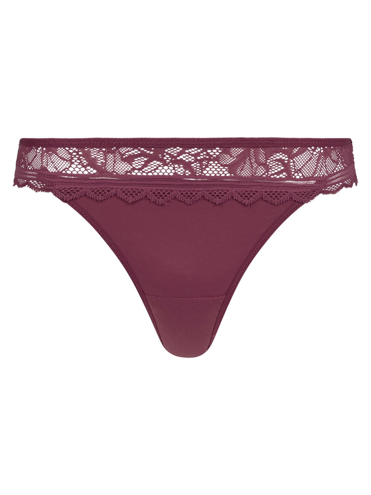 Flot g-strengstrusse fra Chantelle EasyFeel i bordeaux mikrofiber. Trussen er kantet med en blonde øverst i linningen og hele bagsiden er også lavet i ren blonde. Det gør trussen virkelig elegant. Den bølgede kant bagpå er med til at give en flot seamless effekt, så din trusser ikke syner igennem tætsiddende tøj. Kombiner med den smukke Floral Touch bh i samme fine farve, så du får et helt sæt.