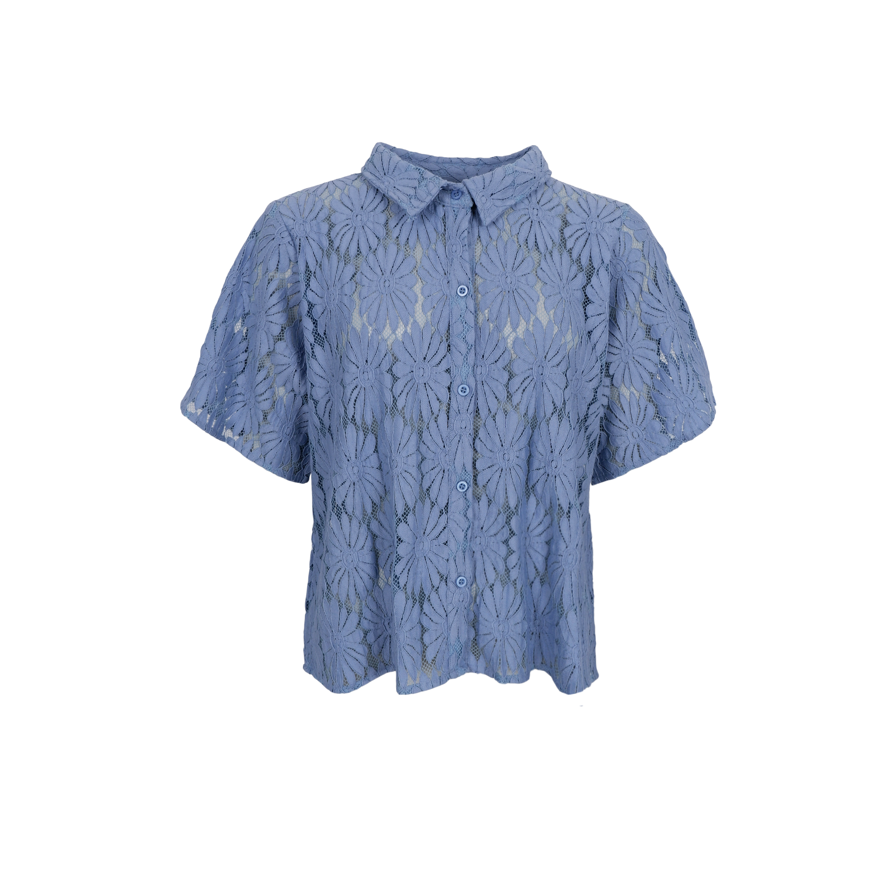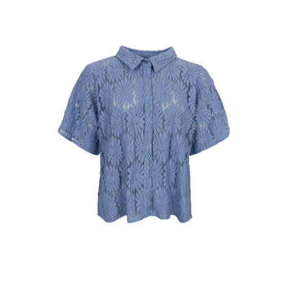 Feminin blondeskjorte fra Black Colour i en støvet blå farve. Skjorten har en let og lækker pasform og er super flot at style til shorts eller hørbukser. Du finder også skjorten i navy og chokoladebrun.Mål:S/M har en brystvidde på ca. 58 cm og længde på 59 cm.