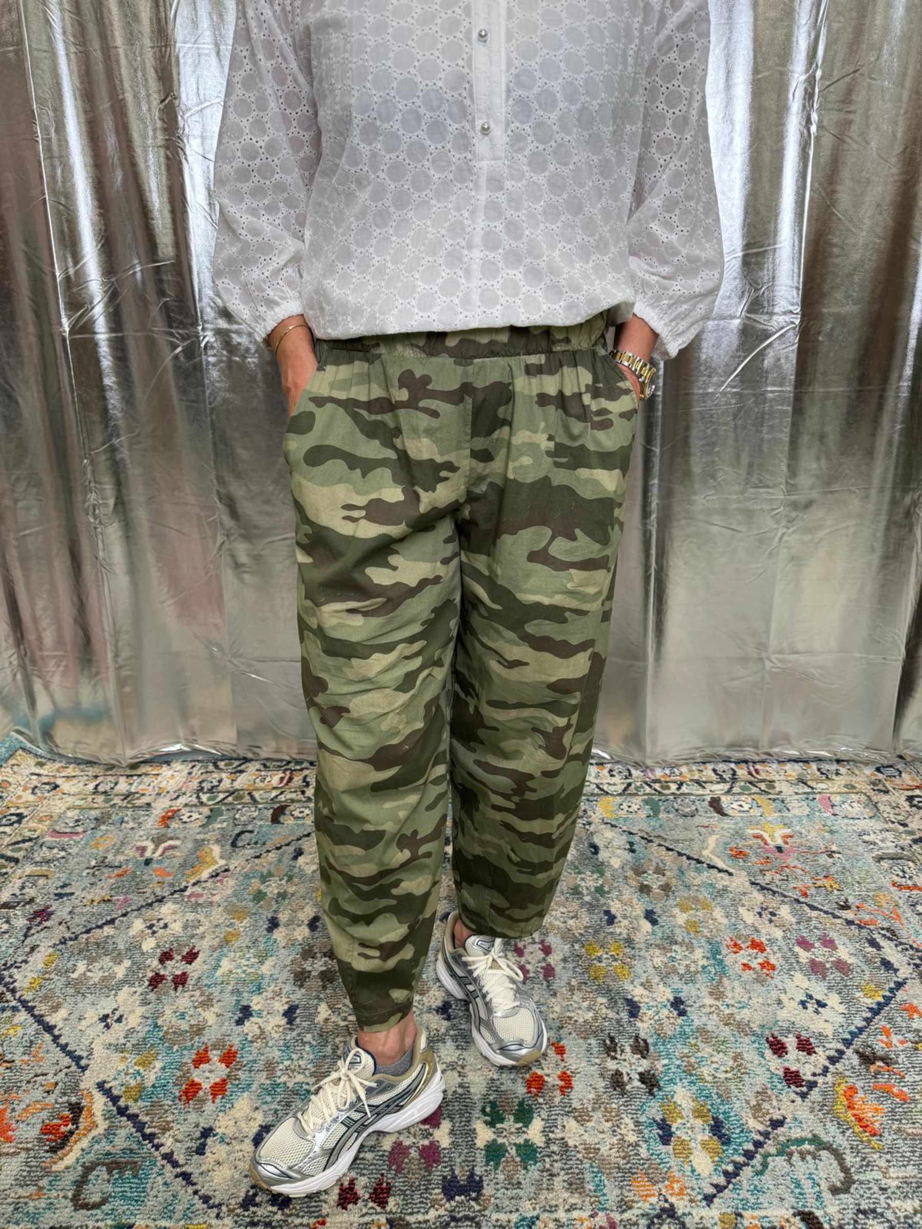 Fede ballonbukser fra Black Colour i camouflage print. Bukserne har elastik i linningen, så de er super behagelige at have på. Der er lommer i siderne for lidt ekstra komfort. Style med en enkel hvid skjorte eller t-shirt. Så får du et outfit, der er skønt at have på, og som også er flot at se på. Du finder også bukserne med leopardprint.Measurement S/M½ Waist (relaxed): 37 cm.½ Waist (stretched): 53 cm.Inseam: 65 cm.