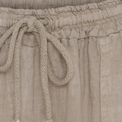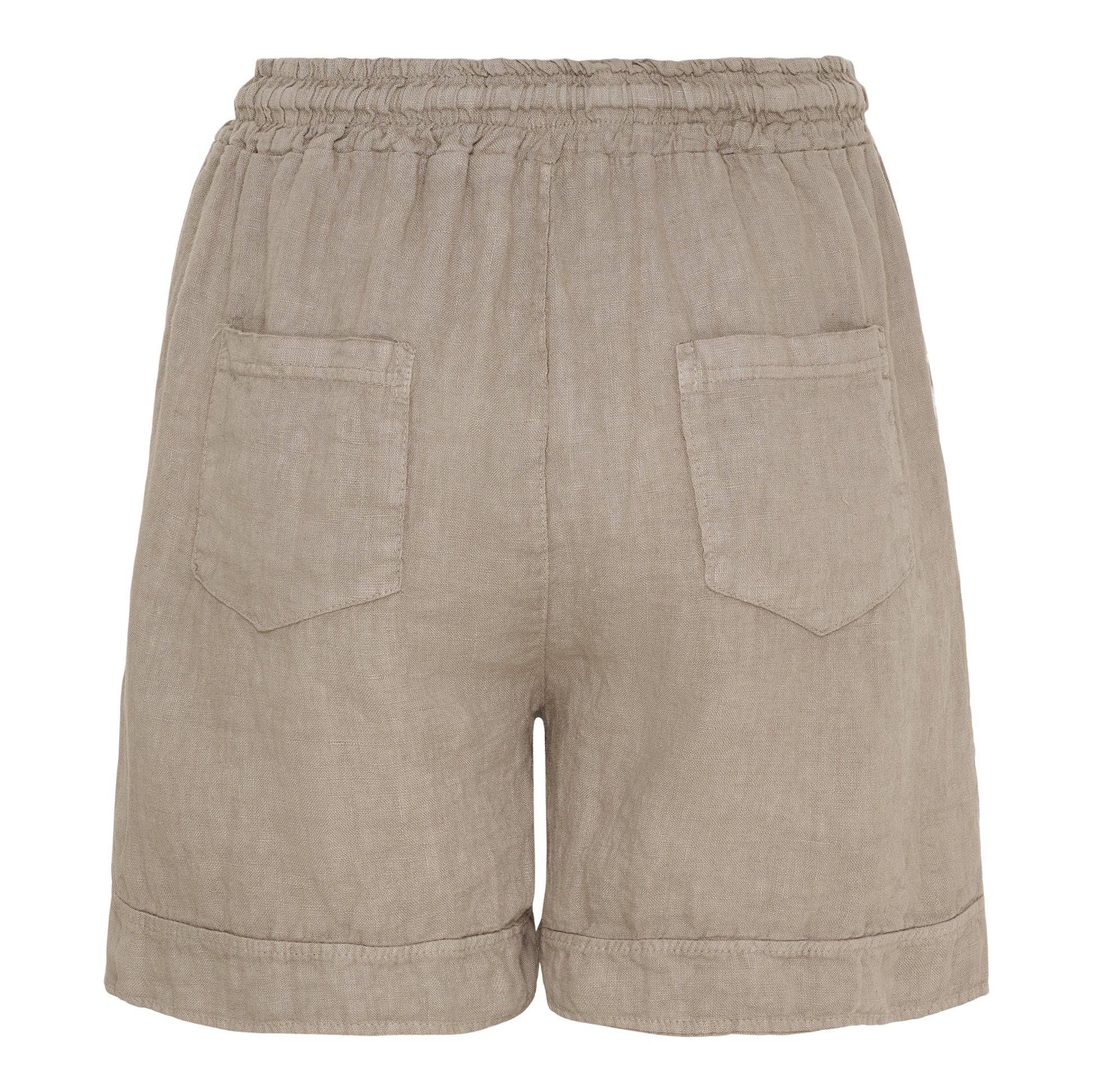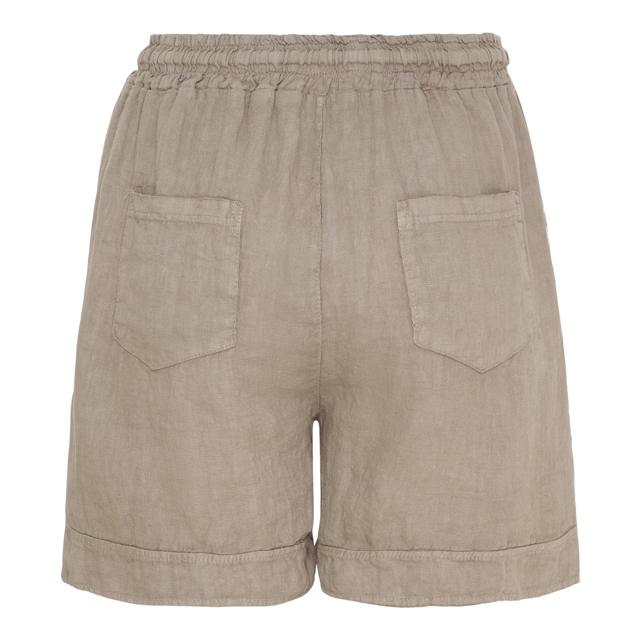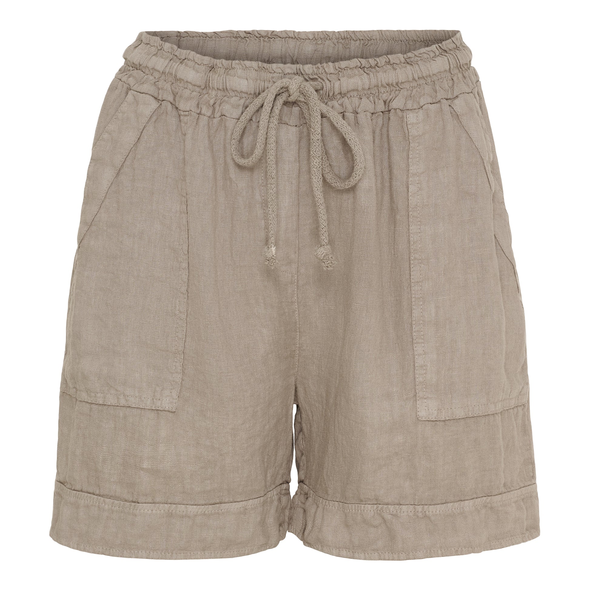 Skønne hør shorts fra Marta du Château i en lækker, varm sandfarve. Shortsene har store lommer foran og elastik samt bindebånd i taljen. Der er lommer bagpå. Style med en hvid t-shirt for et afslappet sommersæt til ferien.