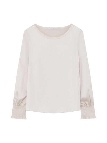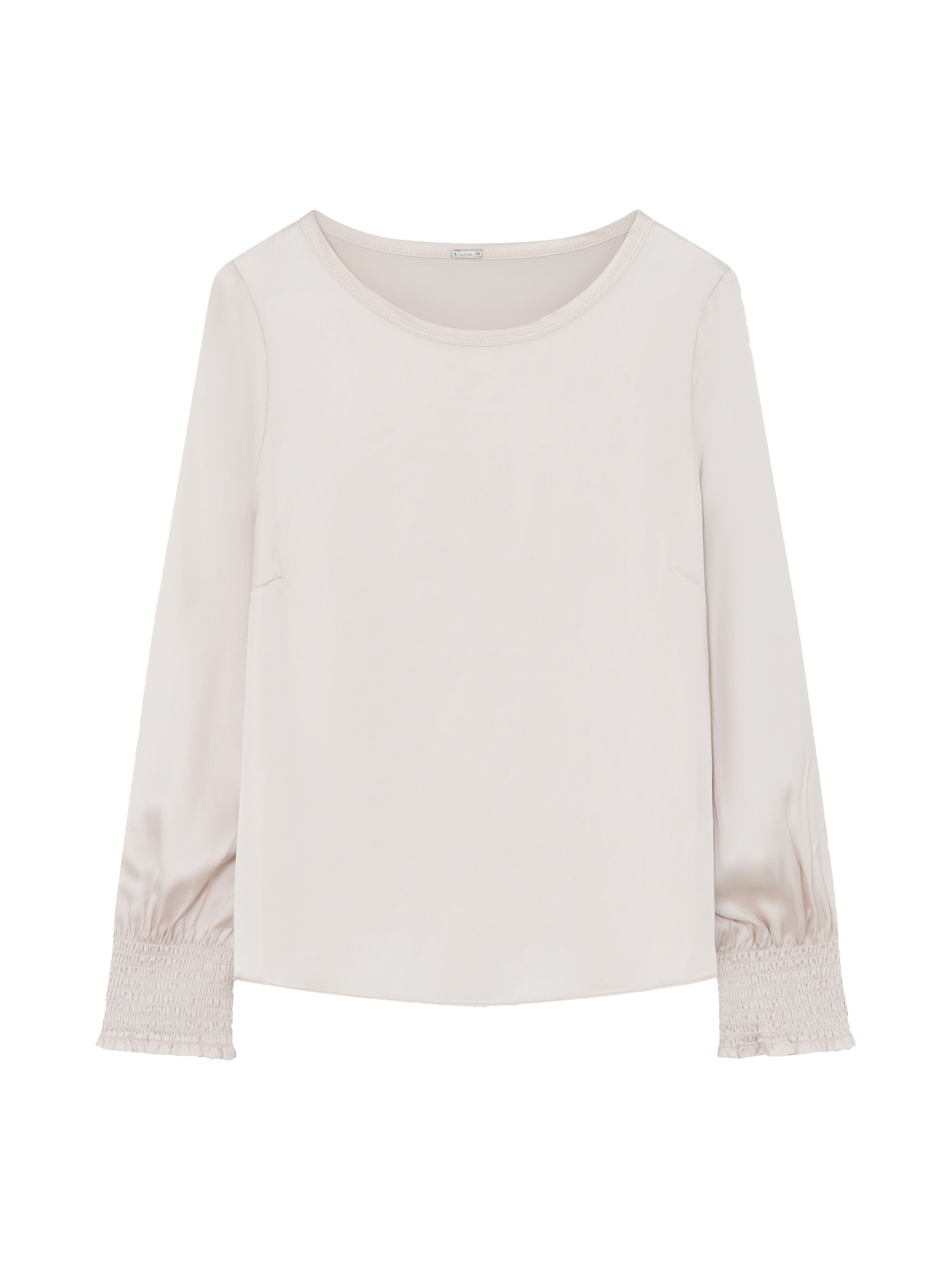 Elegant Gustav bluse i pudderfarvet viskose. Blusen har de fineste manchetter i smock. Den blanke finish giver blusen et virkelig feminint look. Style blusen til dine mørkeblå bukser, hvis du gerne vil have et lækkert efterårs outfit, der ikke bliver for hårdt i kontrasterne. Den pudderfarvede bluse er flot til brune bukser og nederdele.