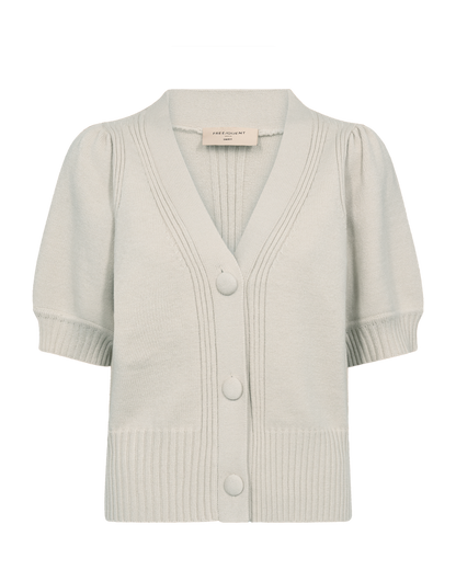 Flot cardigan fra Freequent med pufærmer og store knapper. De brede ribkanter langs udskæringerne giver strikken et chunky look. Den lyse cardigan er flot til dine brune bukser her til efteråret. Du kan selvfølgelig også altid style til sort eller mørkeblåt. Du finder også Alpi strikken i farverne blå og rød. Style med de fede Colette trackpants fra Freequent.