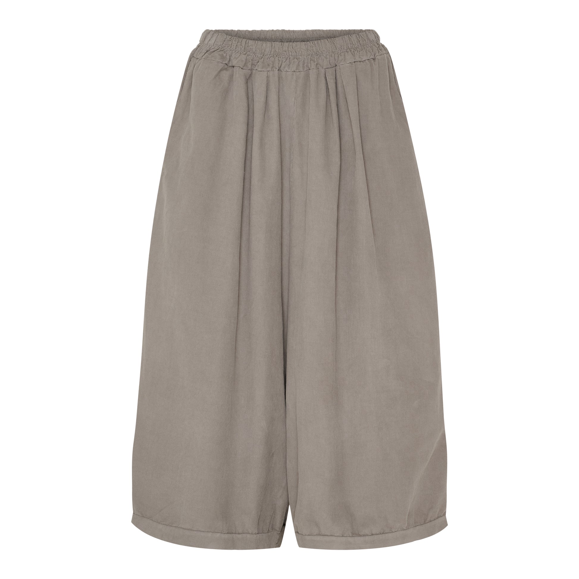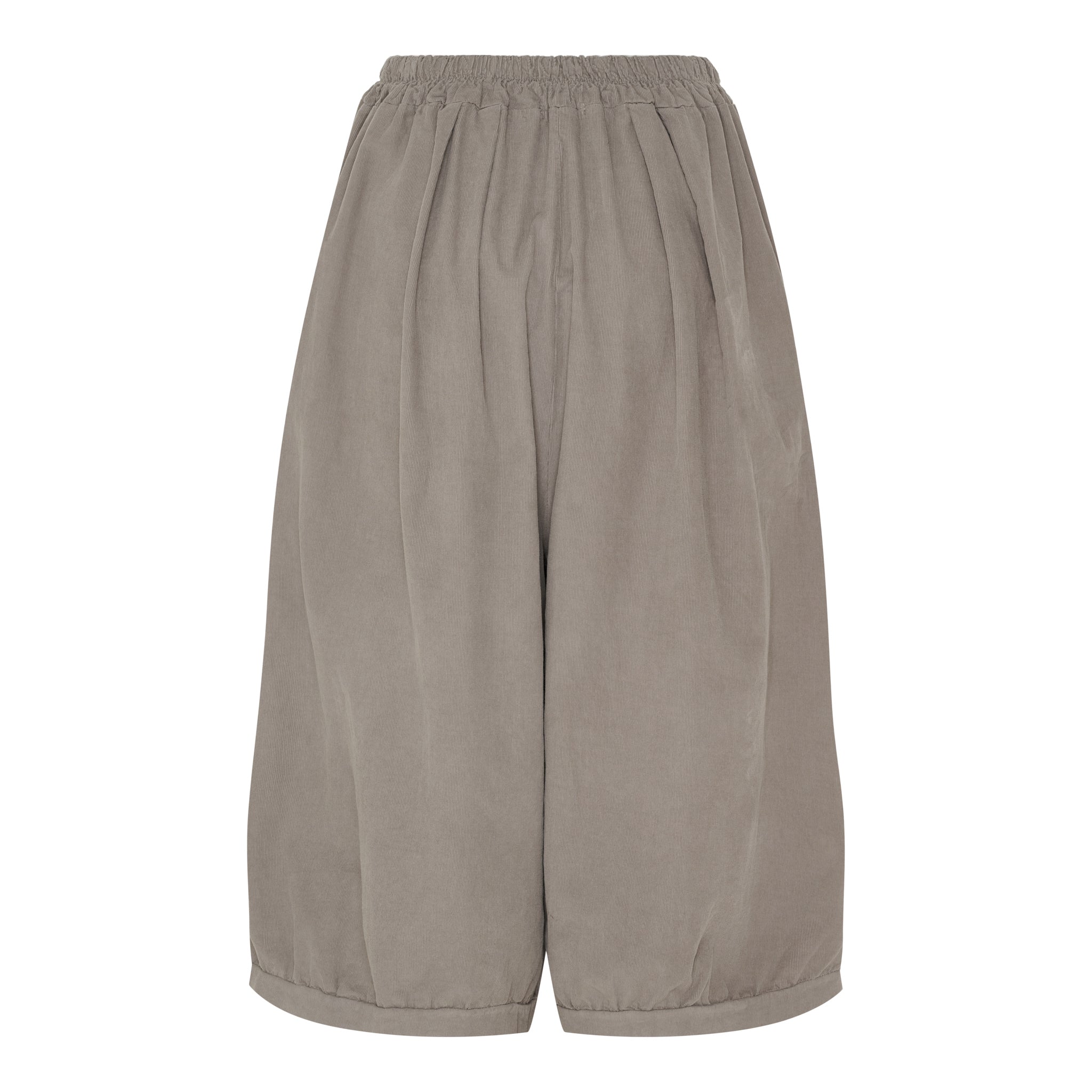 De brede bukser fra Marta du Château er kommet i en lækker sandfarve. Bukserne er lavet i blød baby fløjl og har elastik i taljen. Benene er så brede, at bukserne syner af at være en nederdel.