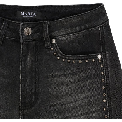 Super fede jeans i sort denim fra Marta du Château. Bukserne har brede ben i lækker 90'er stil. Style med en cool strik eller t-shirt for et råt og afslappet look. BEMÆRK: Buksen er smal i livet. Flere vælger at gå en størrelse op.