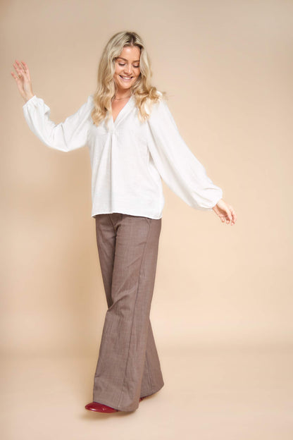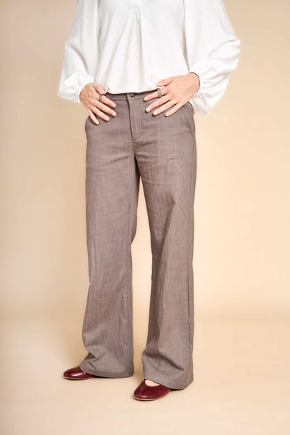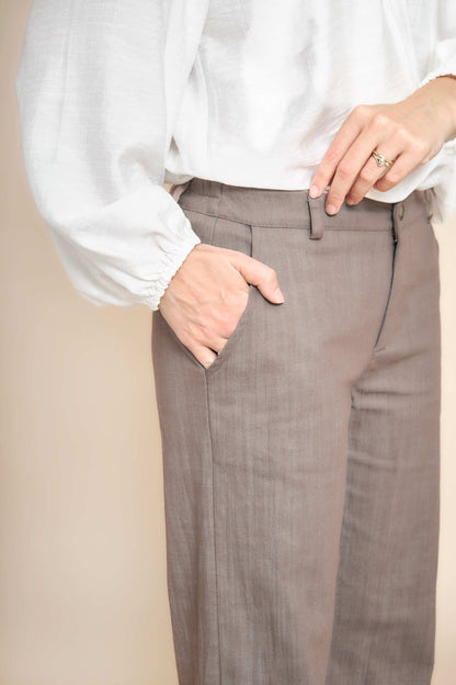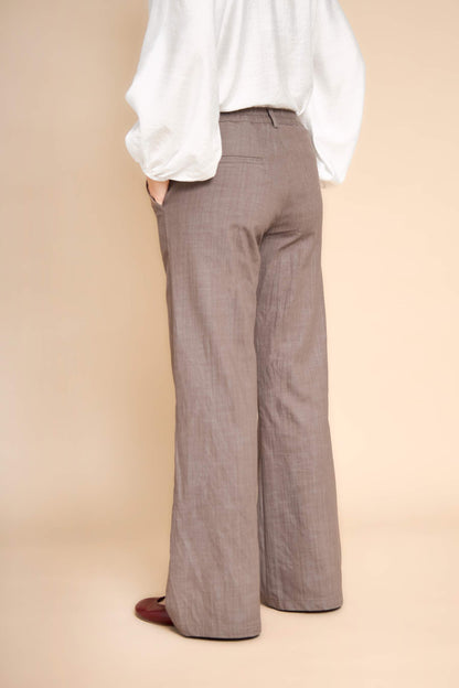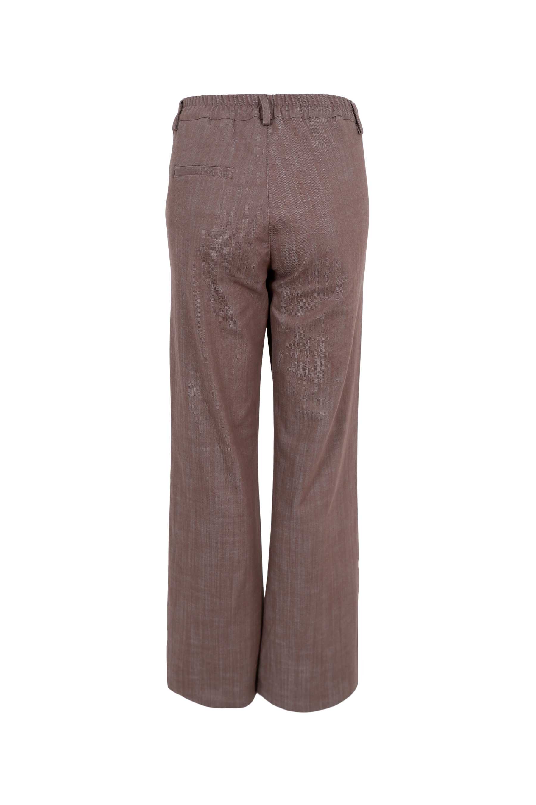 De populære Box bukser fra Black Colour er kommet i en lækker, nougatbrun farve. Perfekt at style med en hvid skjorte, som du ser på billedet, så du stadig kan få et lyst outfit her i sensommeren og til efteråret. Buksen har elastik i linningen bagpå, så du føler dig godt tilpas, når du har dem på. Der er lommer i siderne.Measurement S/M½ Waist (relaxed): 35 cm.½ Waist (stretched): 45 cm.Inseam: 81 cm.