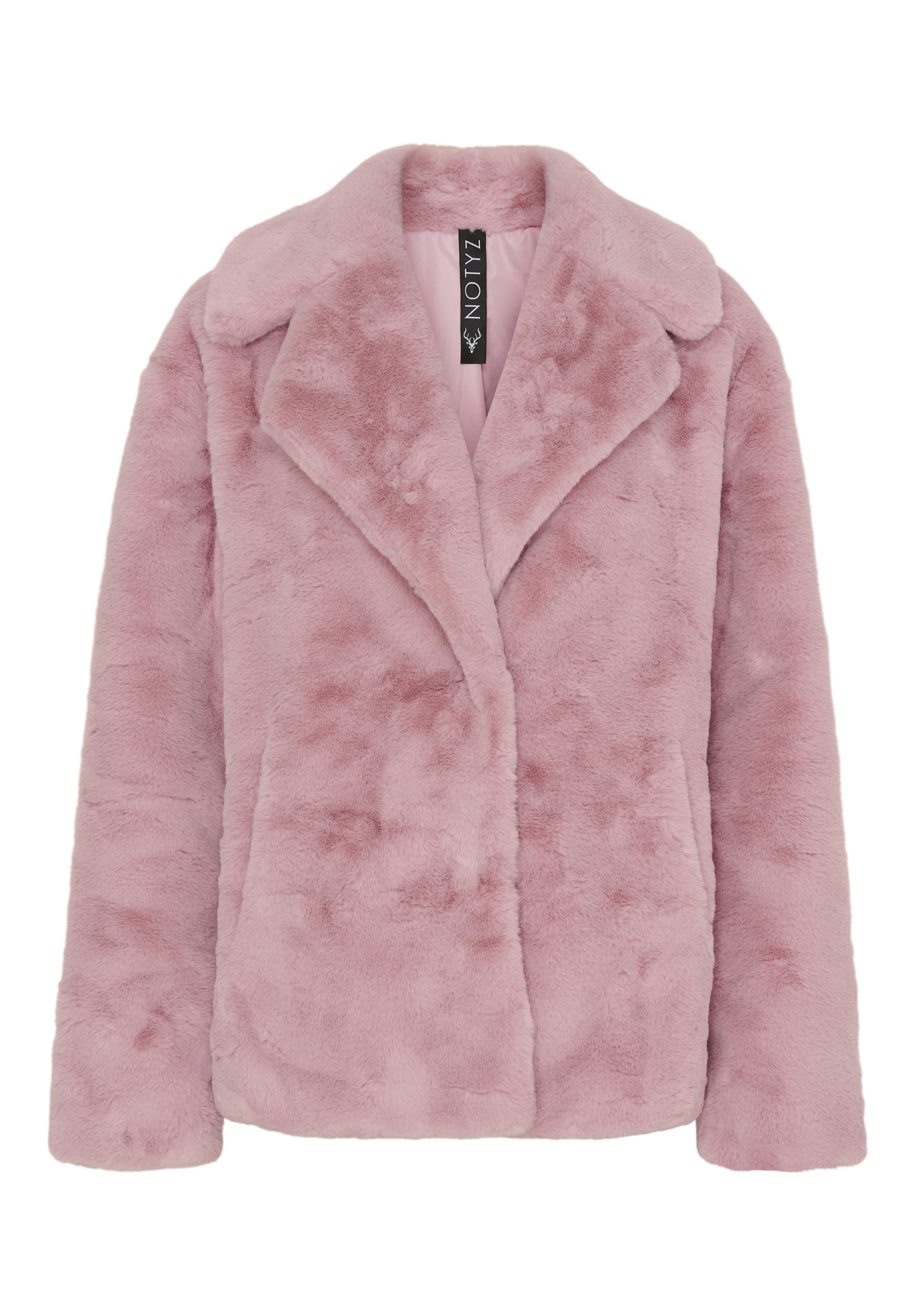 Lækker og vamset jakke fra Notyz i rosa, fake fur. Jakken har bred revers og skjulte knapper. Perfekt jakke til dig, der godt kan lide det pelsede look. Du finder også fake fur jakken i beige.