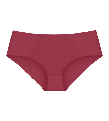 Flot minimizer hipster fra Triumph. Den gode hipster er ekstra bred på siderne og går op og tager det nederste af maven. Den er lavet i lækker mikrofiber, så den er silkeblød at have på. Sæt trussen til den flotte Minimizer bh fra Triumph i samme vinrøde farve, så du får et lækkert Triumph sæt.