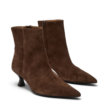 Fin støvlet fra Pavement i brun ruskind. Støvletten har en lille hæl og lukkes med lynlås i siden. Super fin til efteråret med en flot strømpe eller strømpebuks, når vejret bliver køligere.