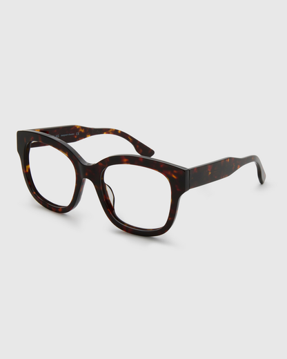 Flotte, brune briller i klassisk skildpaddemønster. Stellet har en rektangulær form med afrundede kanter. Det flotte acetatstel er kraftigt og den brune farve er super fin til efteråret.