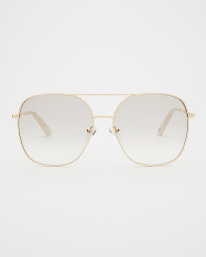 Flotte, gyldne briller i aviator design. Det smalle stel giver brillen et minimalistisk udtryk. Glassene er let tintede.
