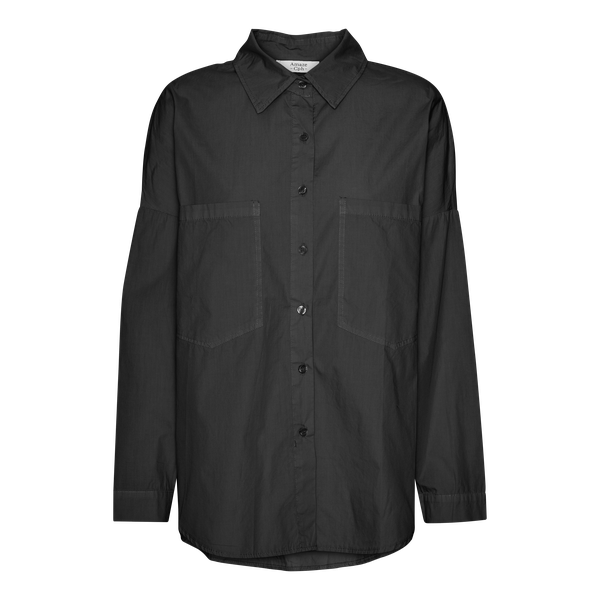Sort skjorte fra Amaze Cph. Skjorten har en god længde er flot til efteråret. Der er store lommer foran, som giver et fedt udtryk. Style den sorte skjorte med en kontrastfarve, hvis dit outfit ikke skal blive for mørkt.