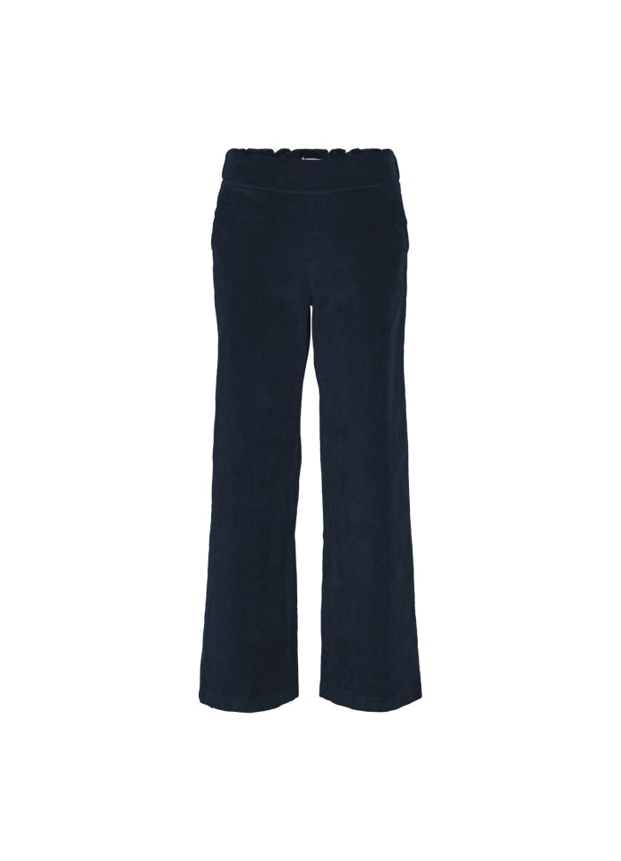 Lækre, mørkeblå bukser fra Amaze Cph. Bukserne har elastik bagpå og glat linning foran. Benene er lige og der er lommer i siderne. Du finder bukserne i flere fine farver.