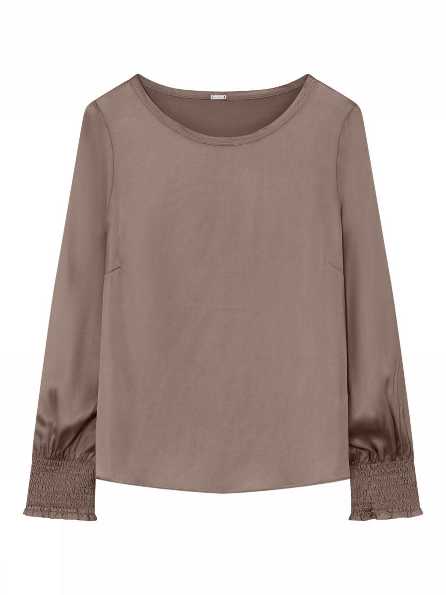 Elegant Gustav bluse med smock ved manchetterne. Det blanke materiale giver blusen et eksklusivt look. Style til bukser og nederdele og gå efteråret i møde i god Gustav stil. Du kan også fint style til denim og lege lidt med kontrasterne mellem det fine og grove materiale.