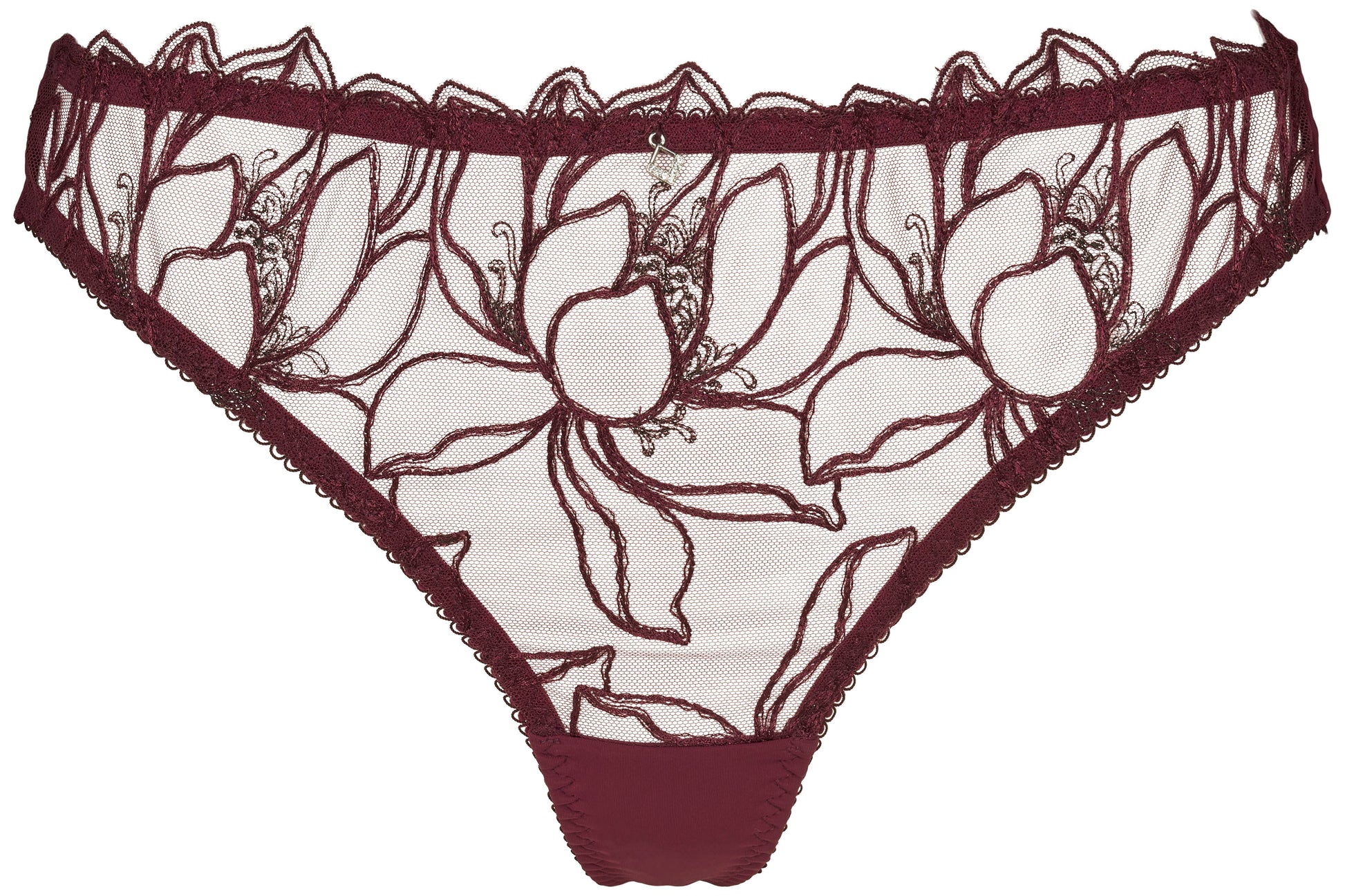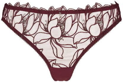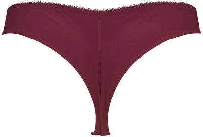 Elegant string fra Missya i efterårets hotteste farve, bordeaux. Den smukke string er lavet med transparent mesh foran og fine syning, der danner et smukt blomstermønster. Den bordeaux string trusse er i glat mikrofiber bagpå. Style med Emily bh'en i samme, flotte farve, så du får et helt bordeaux bh sæt.