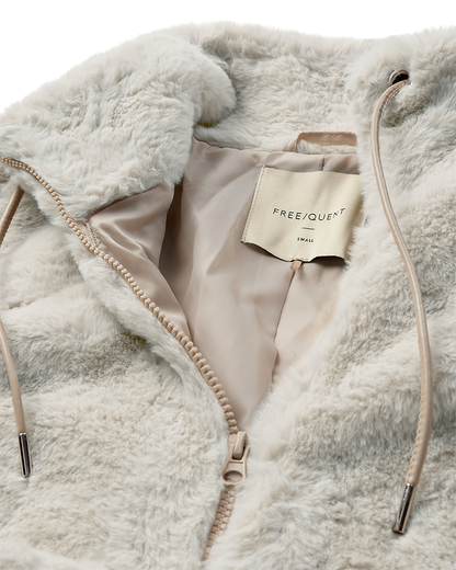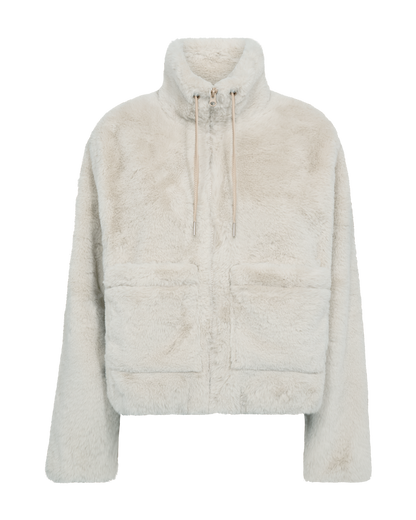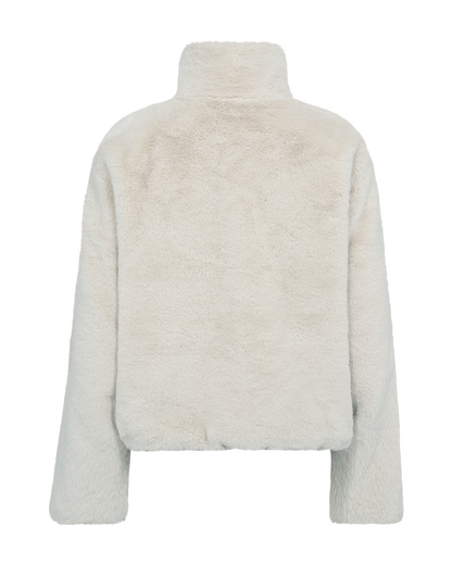 Skøn efterårsjakke fra Freequent i fake fur. Jakken er blød og vamset og har store, oversize lommer foran. Kraven er høj og står fint. Jakken lukkes med lynlås. Det boxy eller firkantede snit gør jakken ung at se på. Du finder også den bløde jakke i en flot mørkebrun farve.
