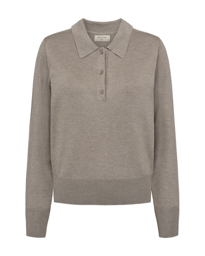 Hop med på det lækre prep school look med den fine strikpolo fra Freequent. Kanterne er afsluttet med rib, så pasformen bliver flot. Style poloen til dine korte nederdele og sæt et par støvler eller loafers til.