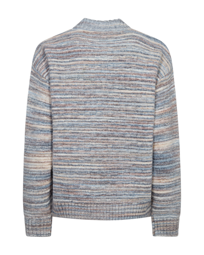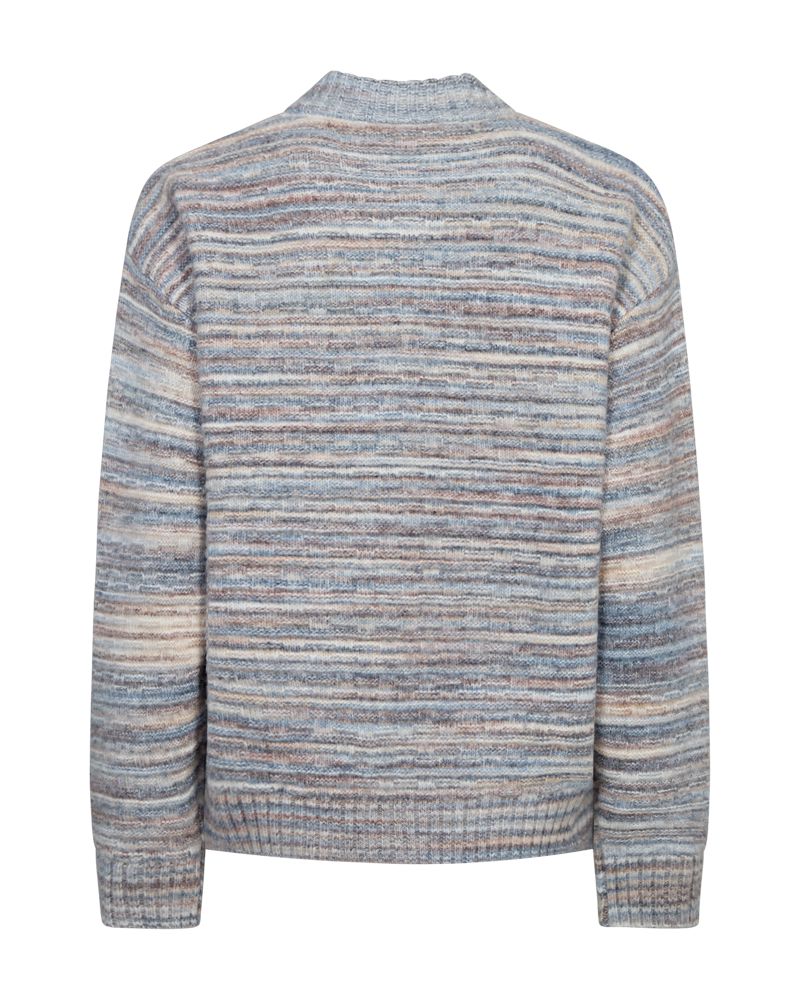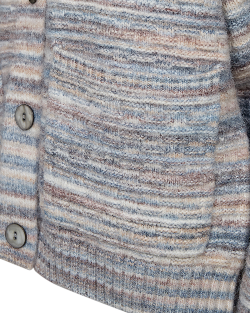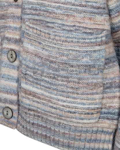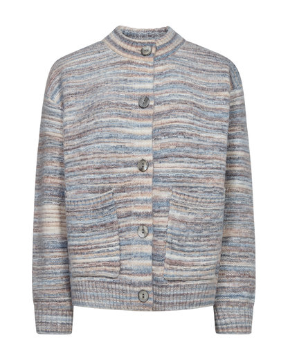 Lækker cardigan fra Freequent med striber i douche toner. Cardiganen har fine lommer foran og lukkes med store knapper.