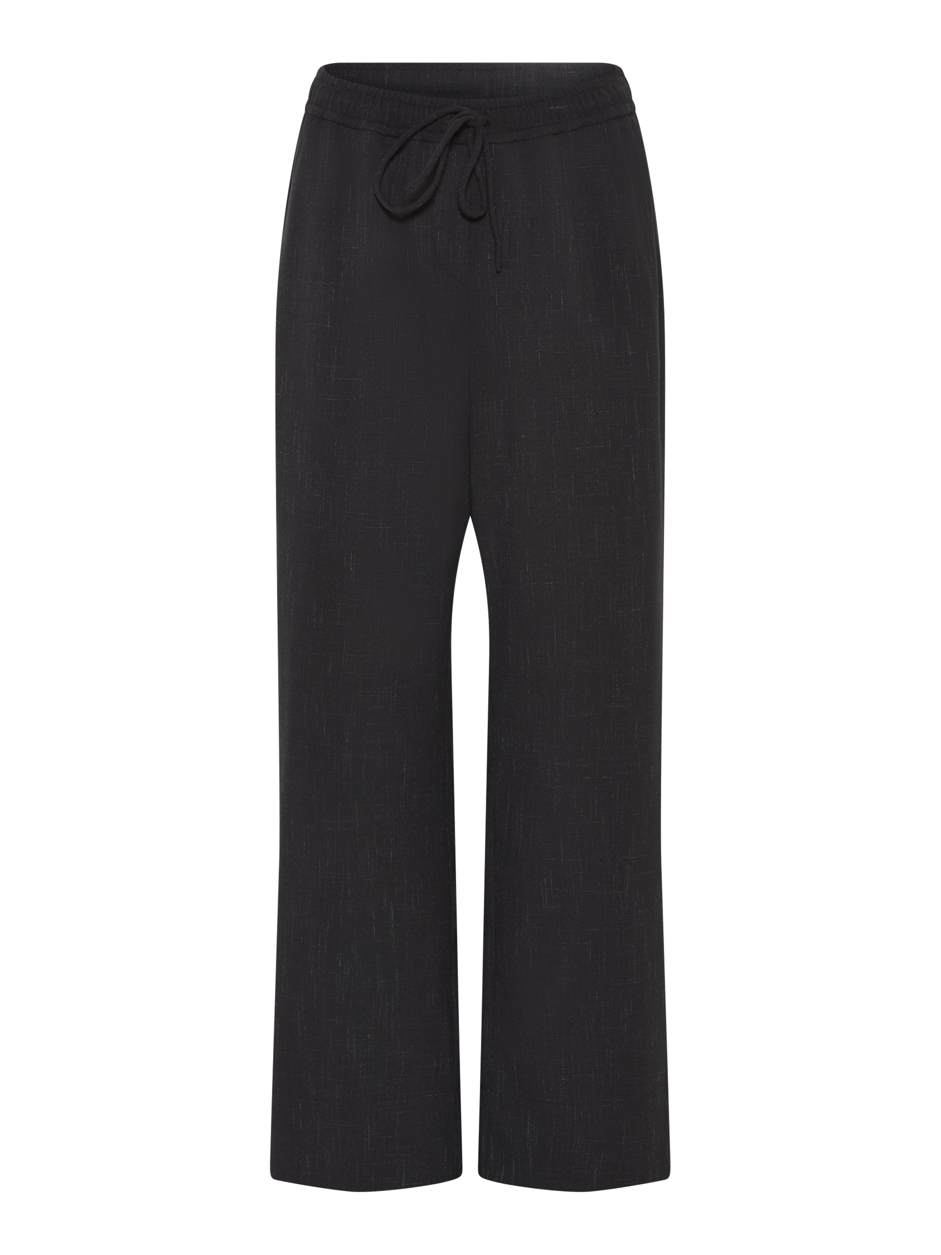 Sorte Gustav bukser med elastik og bindebånd i linningen. Buksen har brede ben og er blød og behagelig at have på. Style med en lækker strik eller en pæn skjorte.