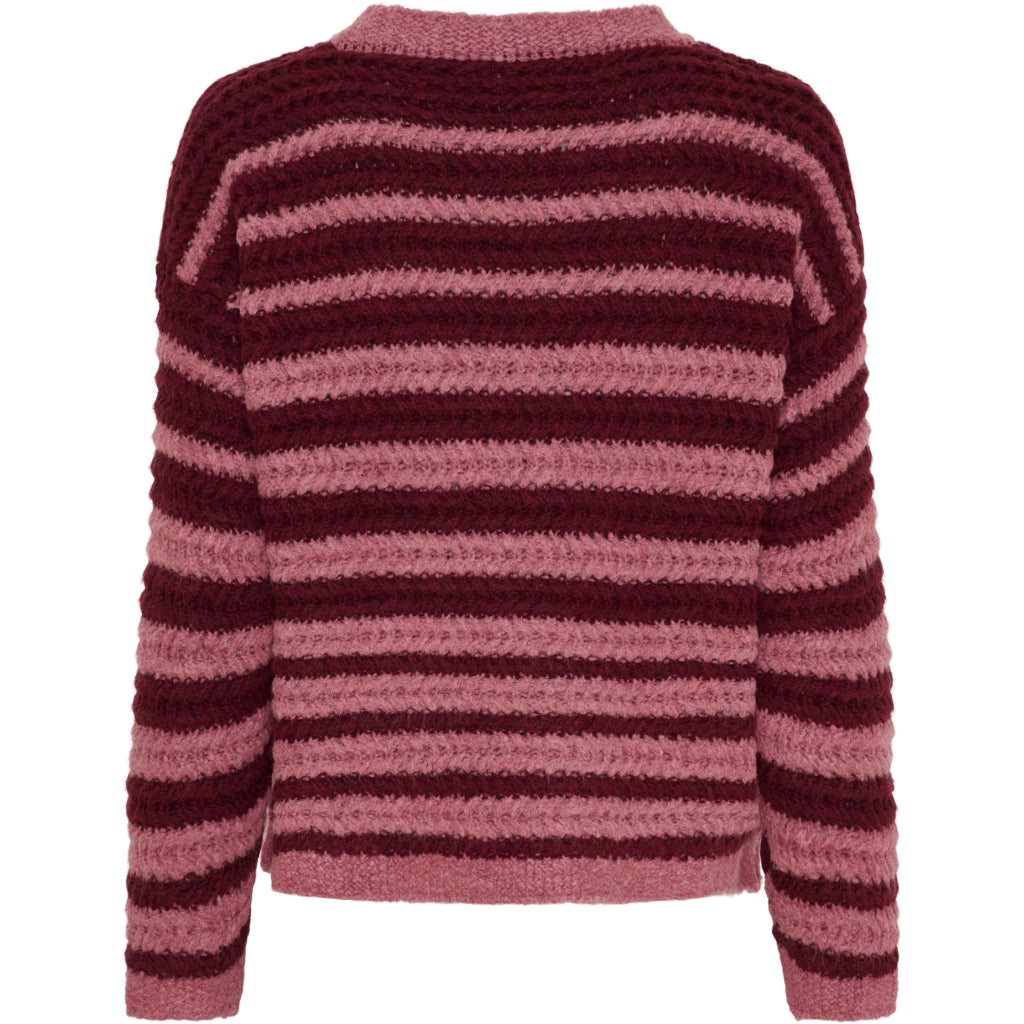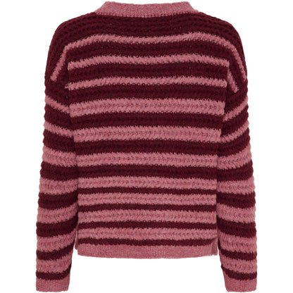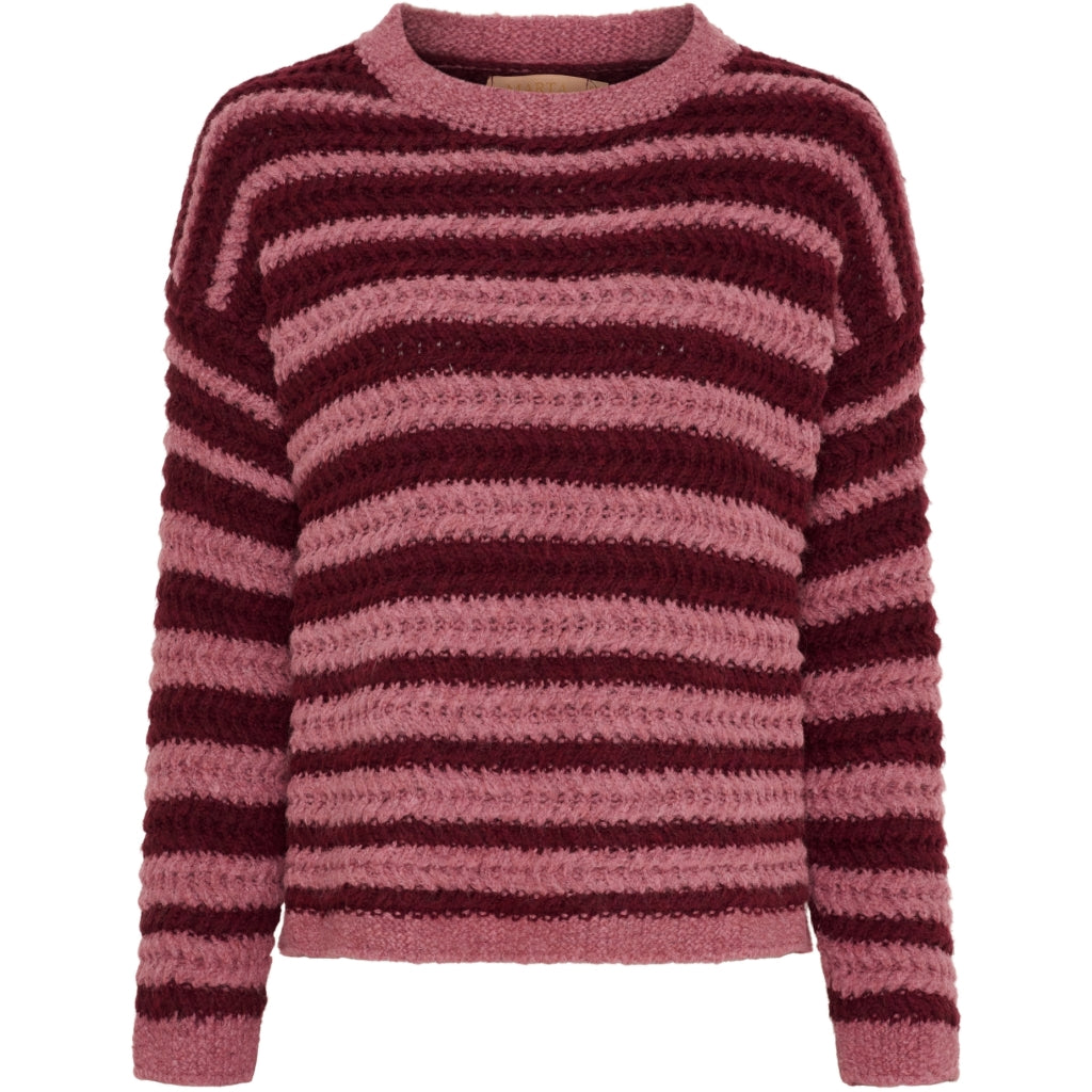 Lækker strikbluse fra Marta du Château med striber i bordeaux og pink. Perfekt til dine bordeaux fløjlsbukser.
