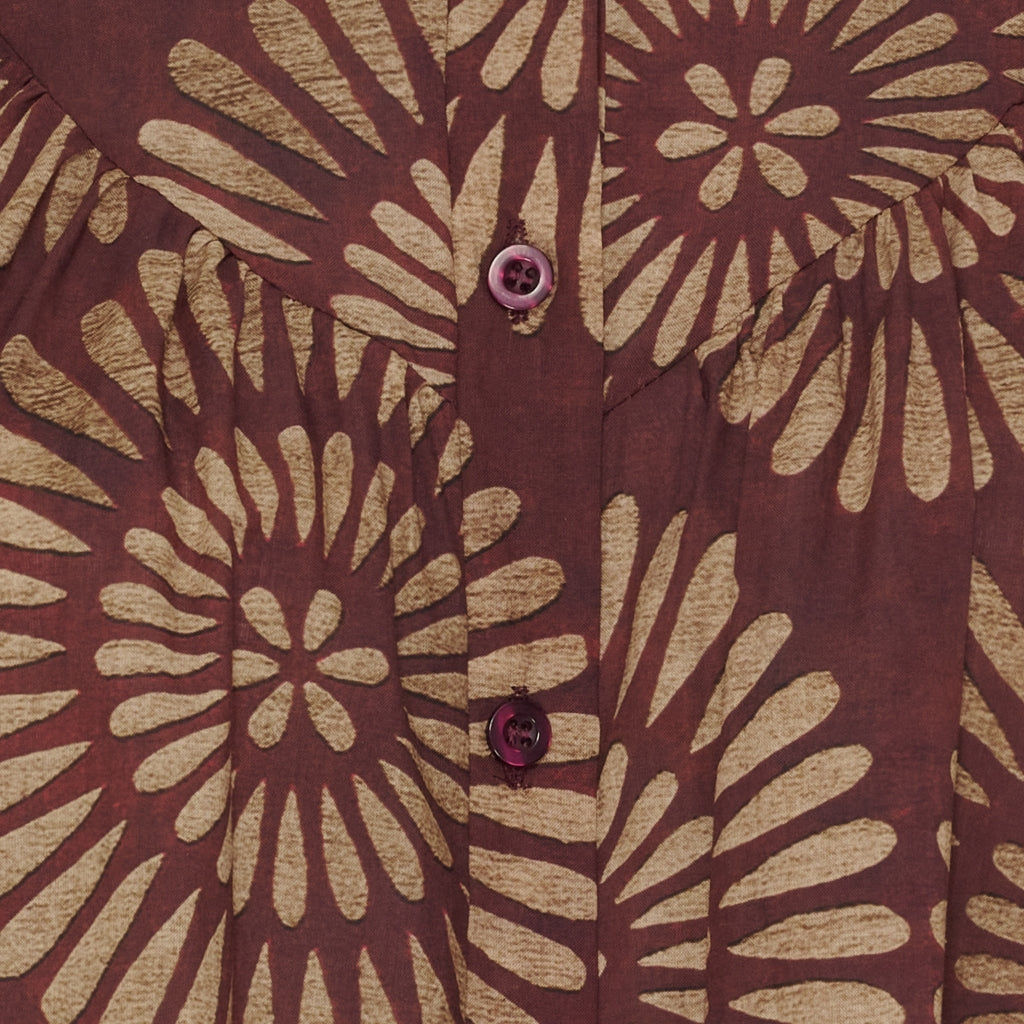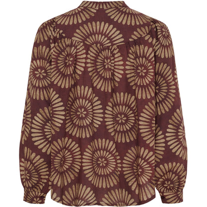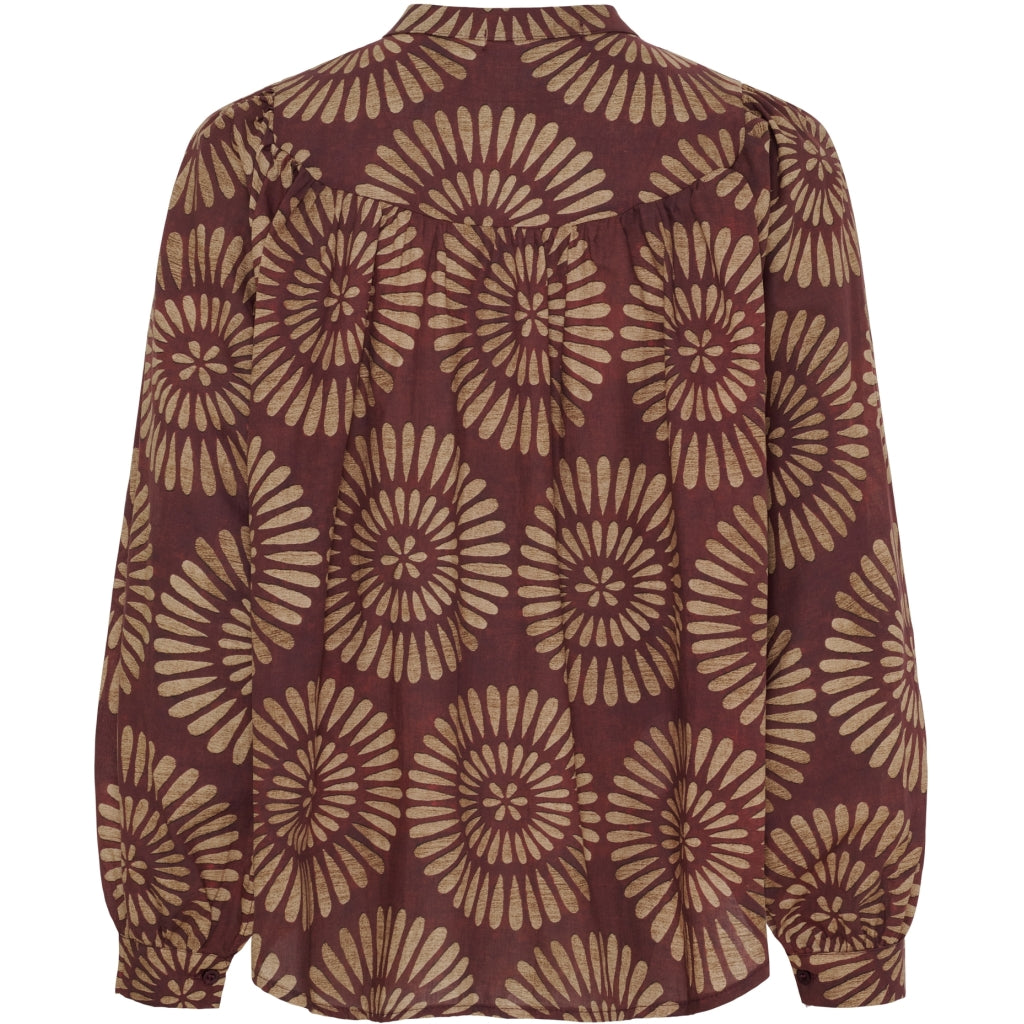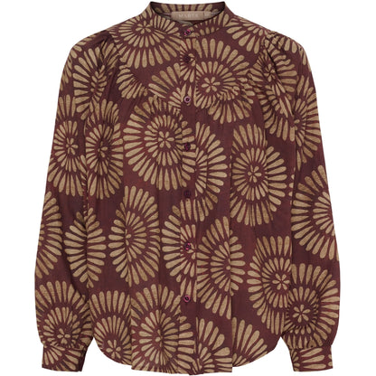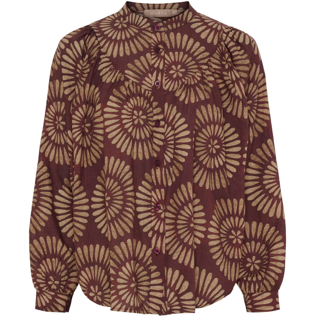 Mønstret bluse fra Marta du Château i en varm, bordeaux farve. Super flot til et par beige fløjlsbukser.