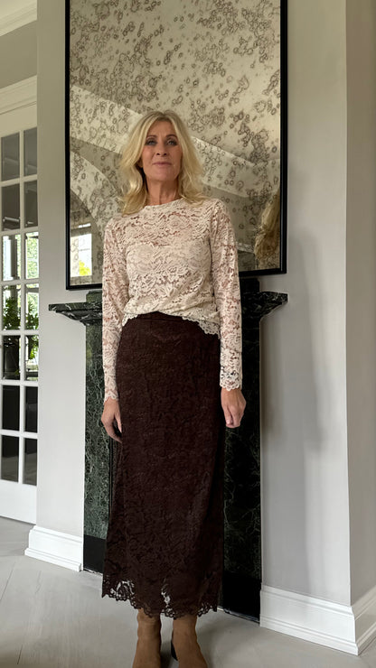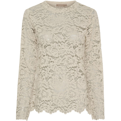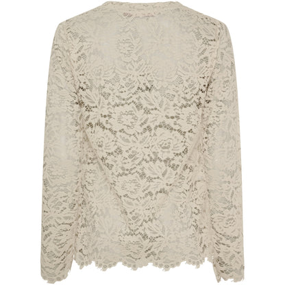 Fin blondebluse fra Marta du Château i en lækker beige farve. Den tynde blondebluse er flot under en blazer eller en lille jakke.
