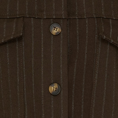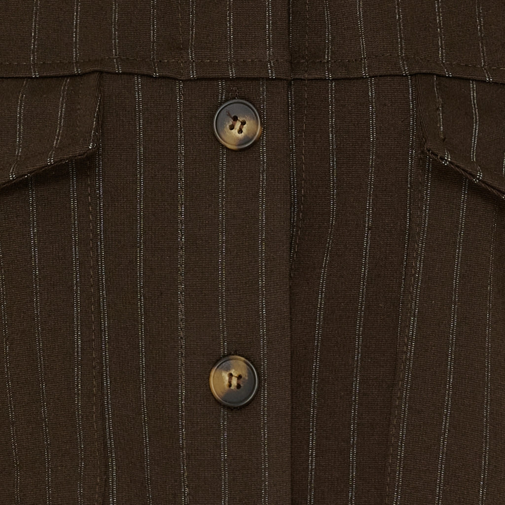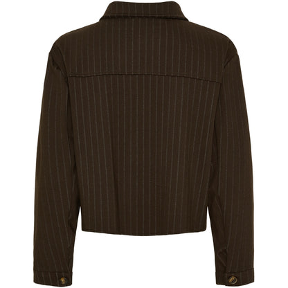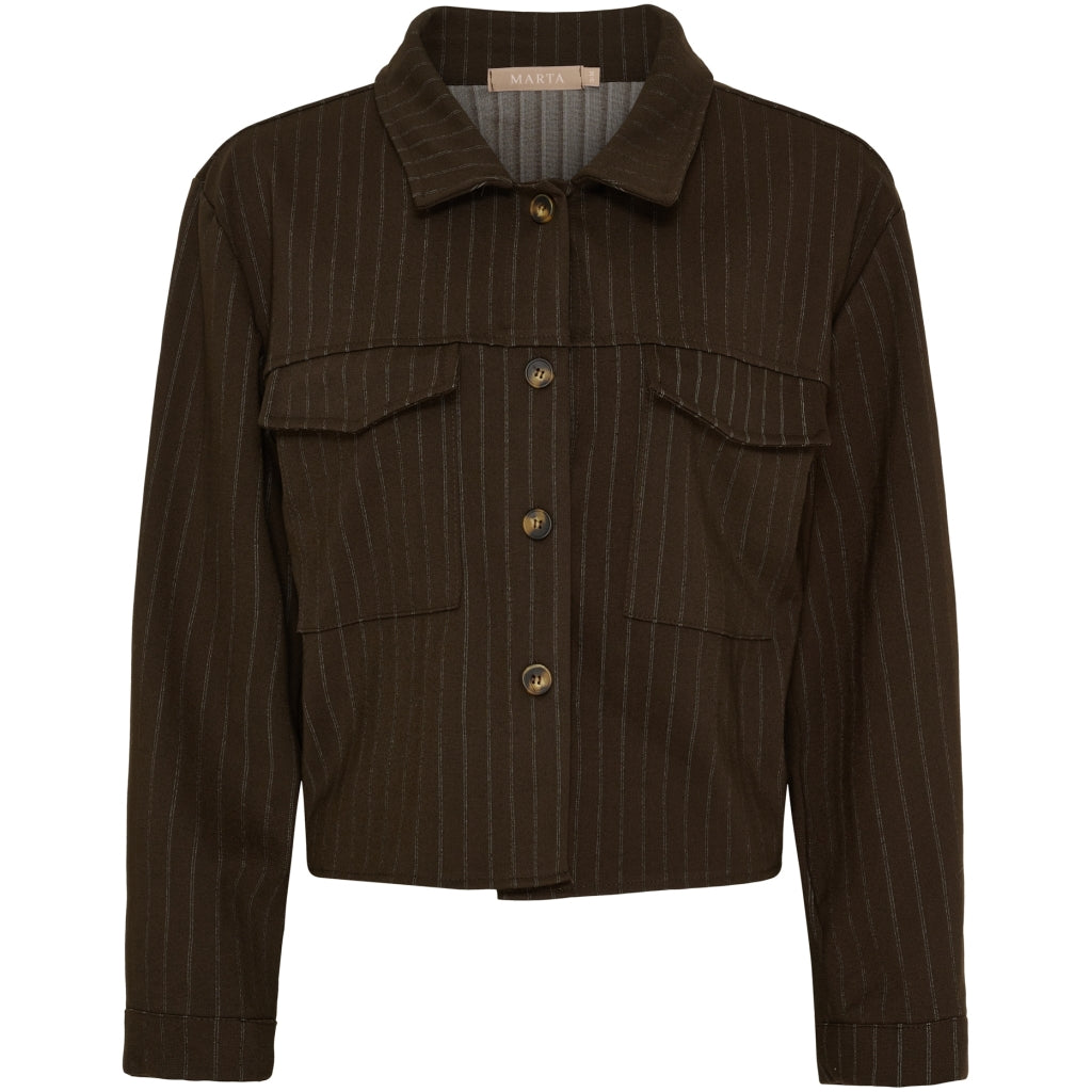 Nålestribet jakke fra Marta du Château. Jakken har et boxy snit med snydelommer og fin krave. Style med de nålestribede Marta bukser, hvis du gerne vil have et sæt der matcher. Du kan med fordel sætte den beige blondebluse under, hvis du gerne vil have et lidt raffineret sæt.