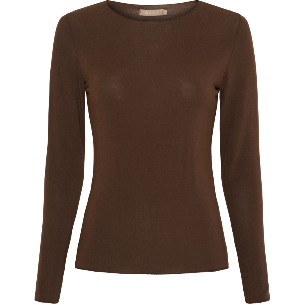 Langærmet t-shirt fra Marta du Château i blød modal. Perfekt under en strik kappe eller en vest. T-shirten er figursyet, så du får en flot facon.Mål:S/MLength: 62 cm.Chest: 100 cm.L/XLLenght: 65 cm.Chest: 104 cm.
