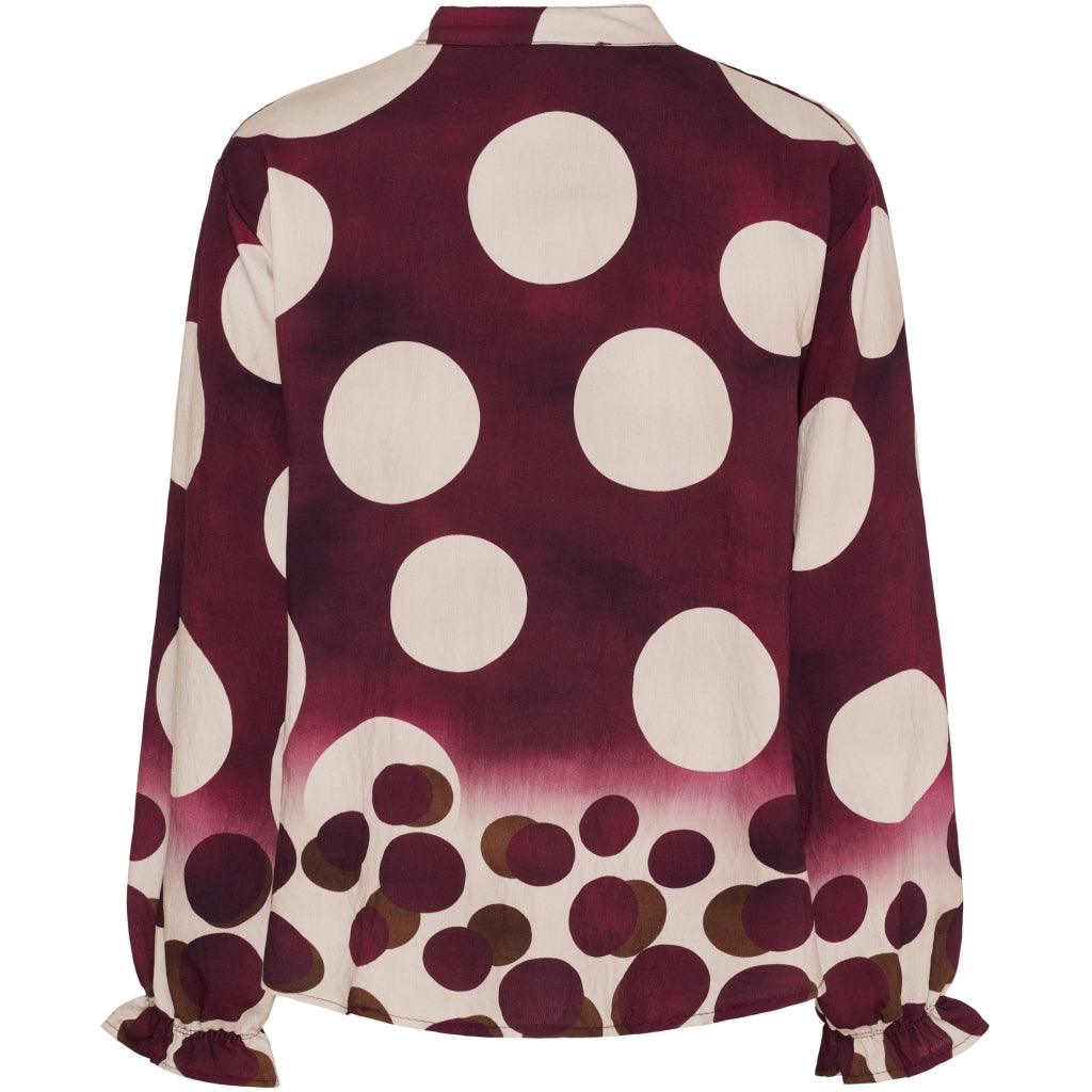 Skøn skjortebluse fra Marta du Château i trendfarven bordeaux. De store, lyse bomber giver blusen et fedt look. Style til enten lyse eller bordeaux bukser.