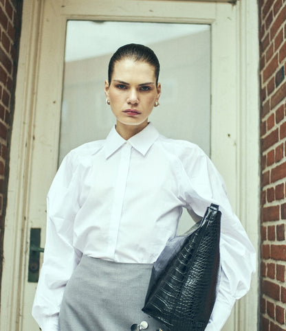 Flot, hvid skjorte med store ærmer. Skjorten har høje manchetter, så dit look bliver stramt. Perfekt til efteråret med suit pants eller en pencil skirt.