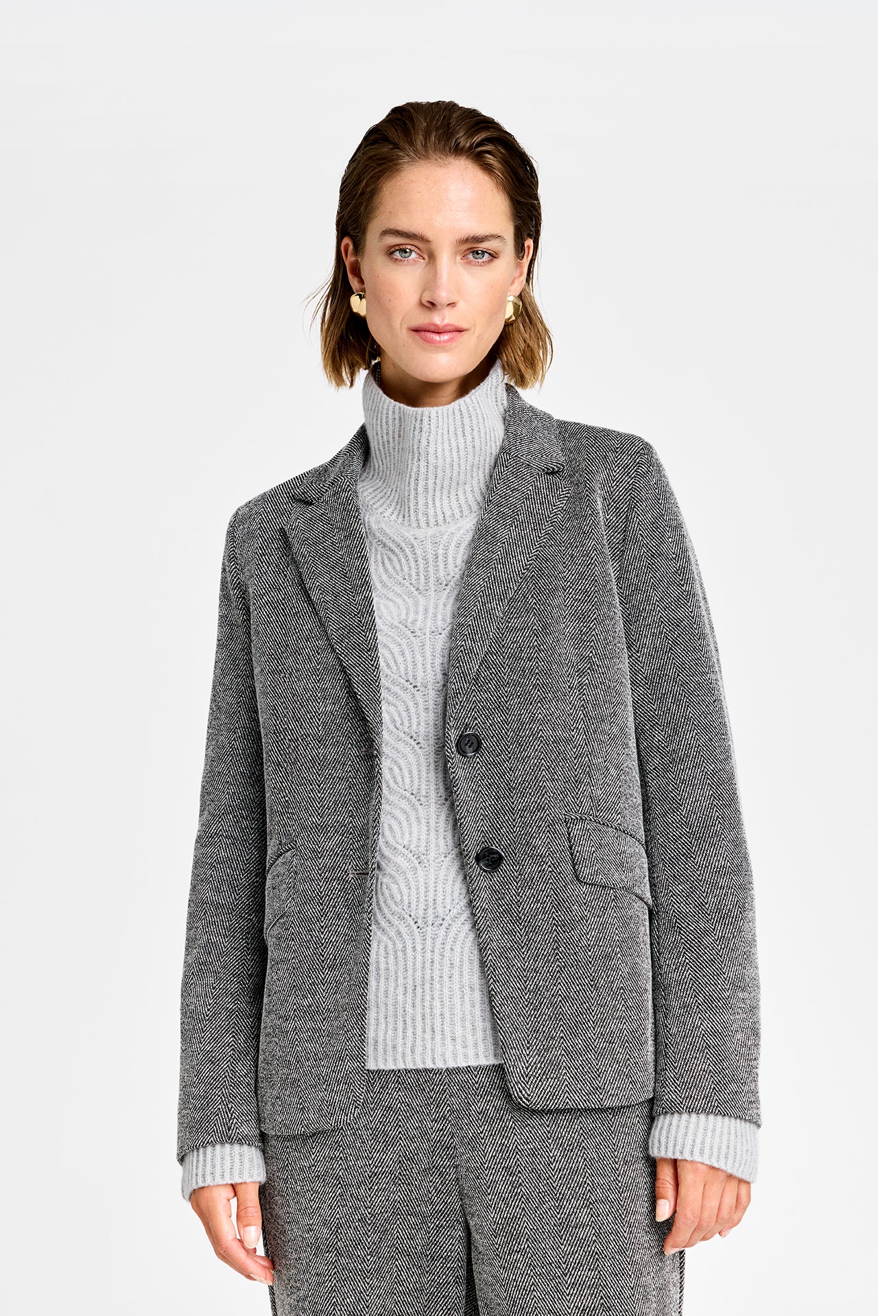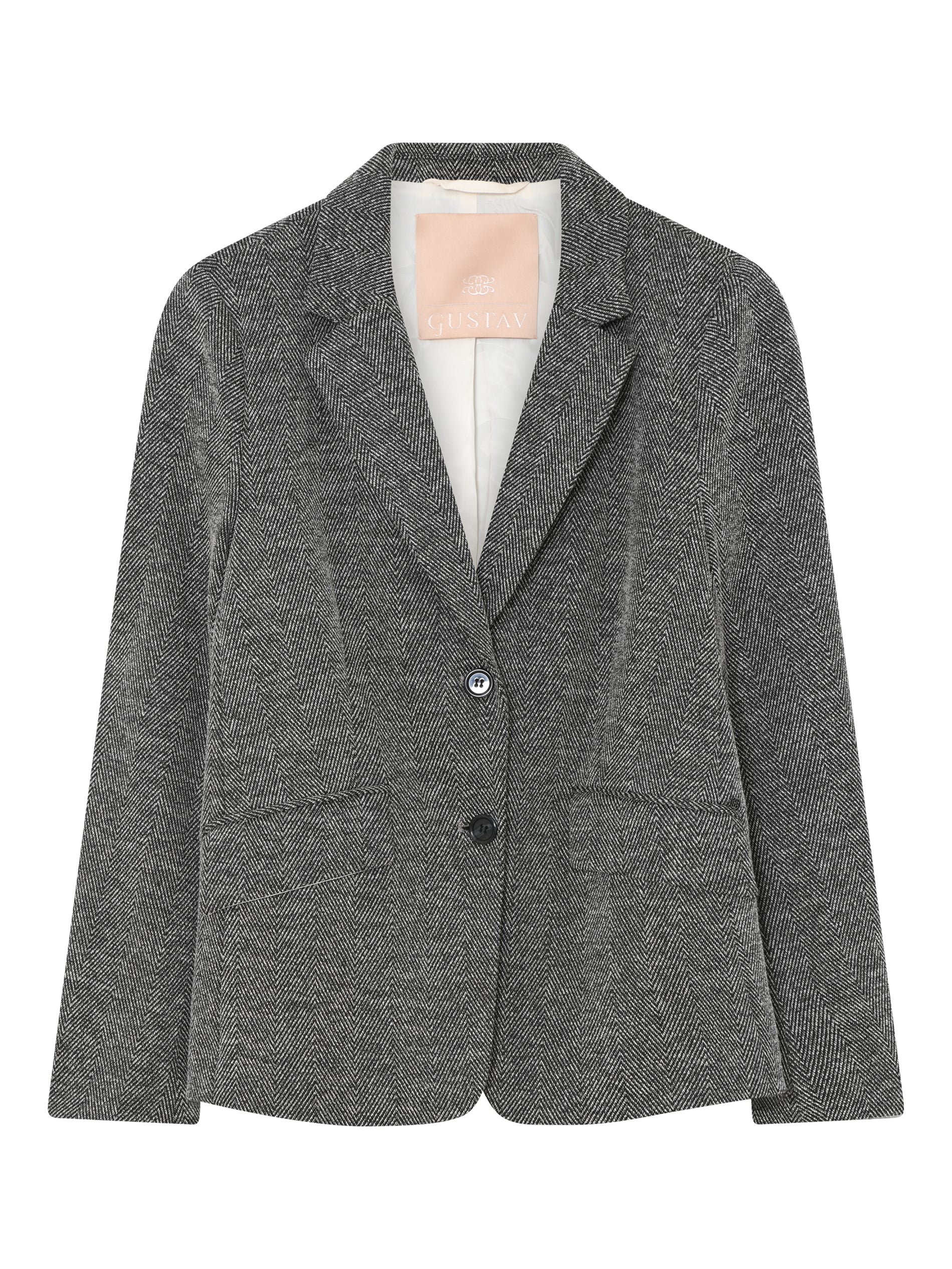 Skøn efterårsblazer fra Gustav i lækker tweed. Blazeren er holdt i de grå og sorte toner med sorte knapper. Styler til de matchende Marit bukser, hvis du gerne vil have et helt suit, der gør sig godt til efteråret. Sæt en strik under hvis det skal være lidt mere afslappet.