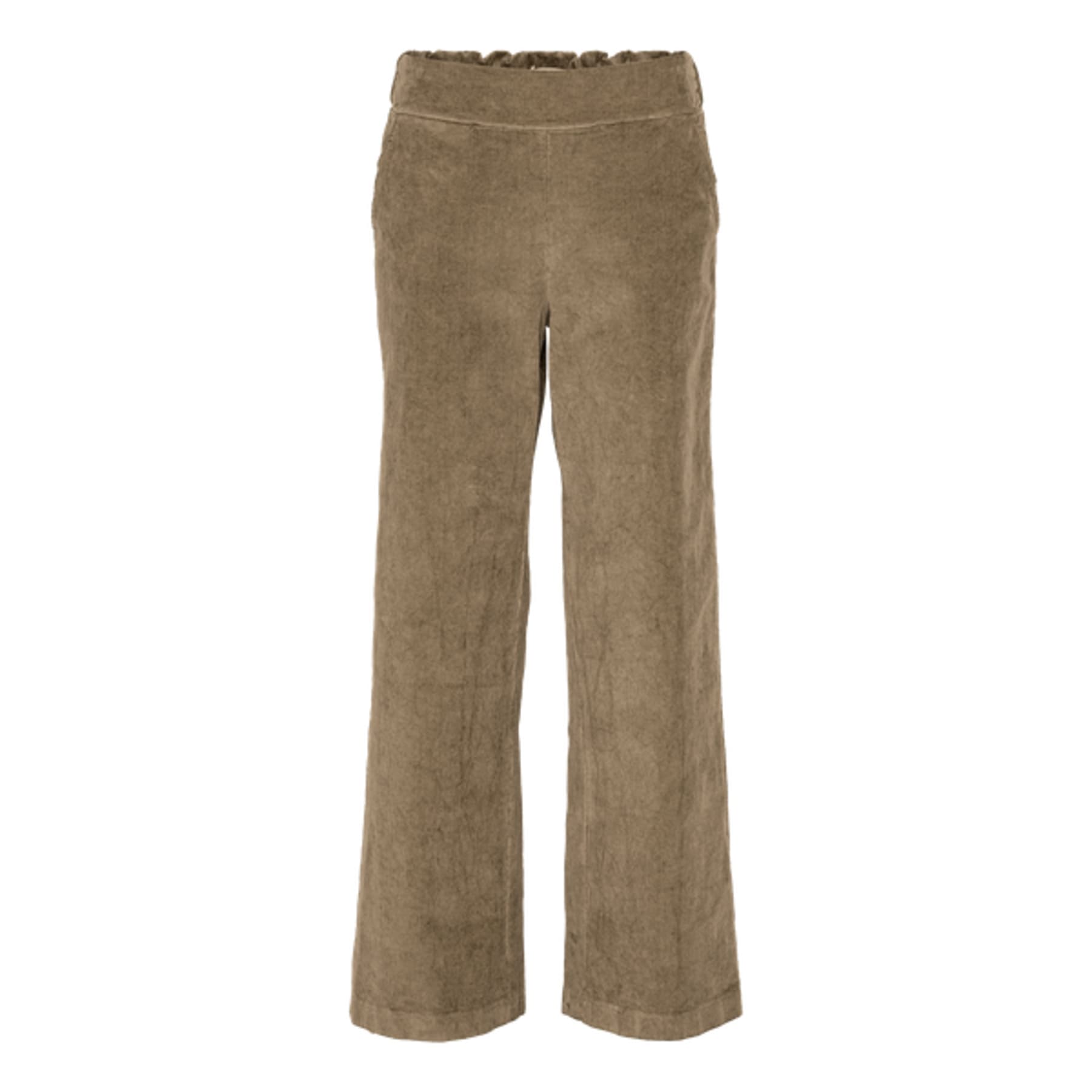 Lækre fløjlsbukser fra Amaze Cph i en gråbrun farve. Buksene har fin vidde i benene og glat linning foran. Den gode elastik bagpå sikrer en behagelig pasform. Style med en strik i off white eller en hvid skjorte.