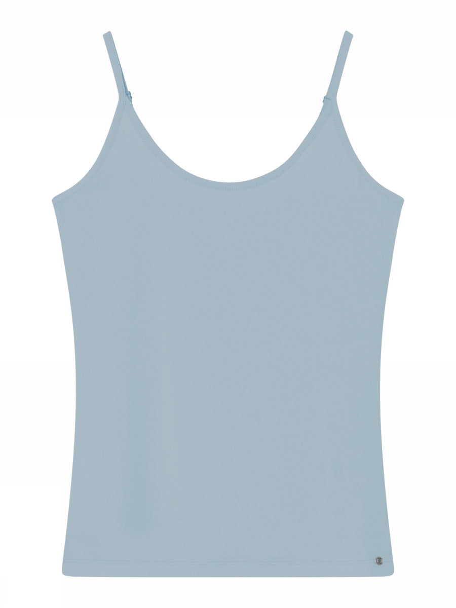 Skøn blå stroptop fra Gustav med smalle stropper. Den bløde bomuldskvalitet gør toppen lækker og blød at have på. Perfekt under dine strikbluser og blazerjakker.