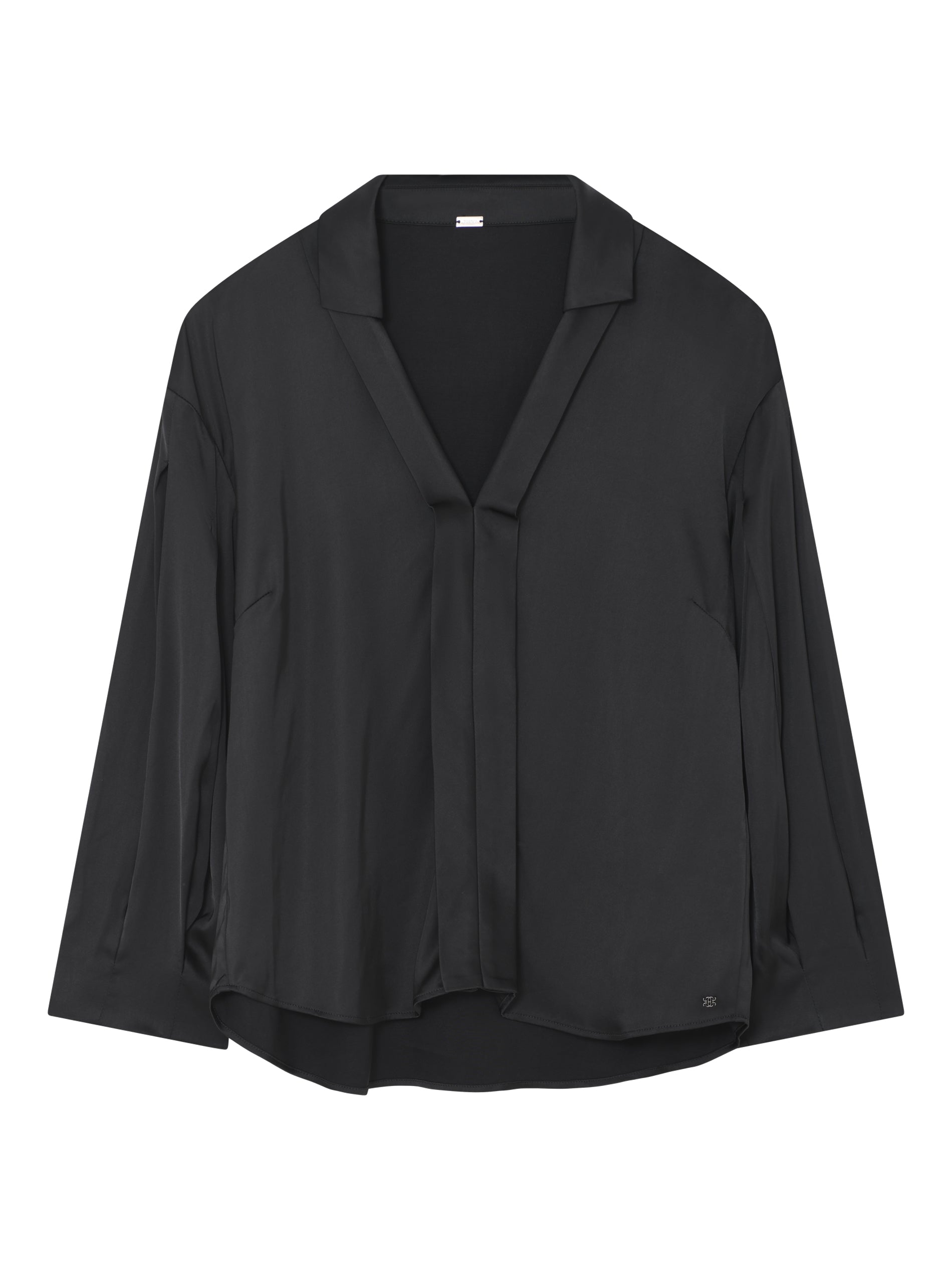 Flot gå-i-byen bluse fra Gustav i sort viskose. Blusen er blank i materialet og har en flot plissé ned langs forsiden. Det giver blusen et elegant look. Style til dine pæne bukser med en stilet, og bliv klar til byturen med veninderne.