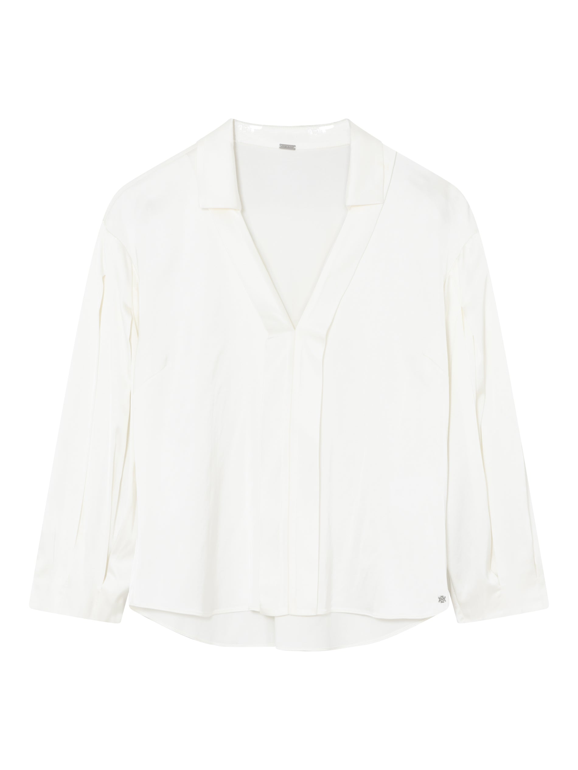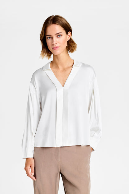 Elegant bluse fra Gustav i blank viskose. Den flotte plissé ned langs forsiden giver blusen et virkelig flot udtryk. Style til dine sorte bukser med en stilet, når du skal i byen.