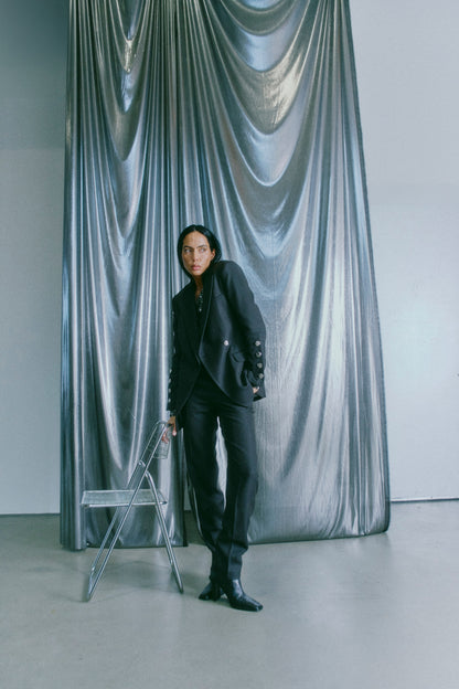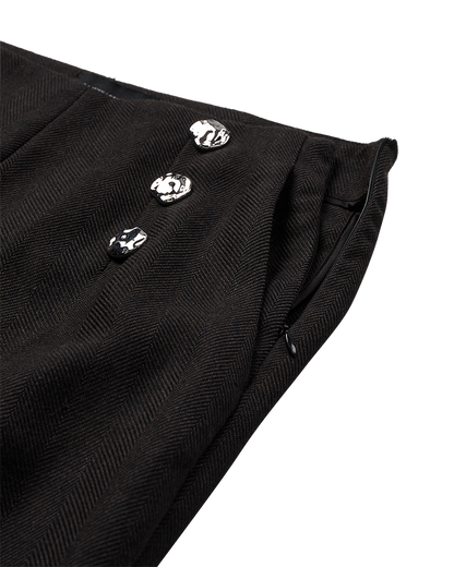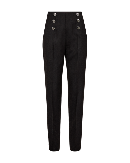 Lækre højtaljede bukser fra Copenhagen Muse med smalle ben. De fine knapper giver buksen et dekorativt touch. Det fine sildebensmønster giver buksen et fedt efterårs look. Du lukker den højtaljede buks i siden med skjult lynlås. Style med den matchende blazer, så du får et helt sæt. Bemærk: Buksen er lille i størrelsen - flere vælger at gå en størrelse op i forhold til deres normale størrelse.Mål:Livvidde str. M: 40 cm