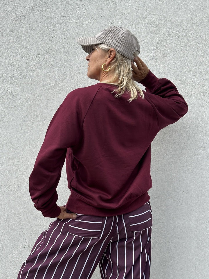 Mangler du en lækker sweatshirt, som kan lidt mere? Her får du en flot, bordeaux sweatshirt fra Gaspar med en stor guldsmed foran. Det bryder lige det afslappede, så dit outfit bliver lidt mere råt at se på. Style som på billedet til cargo bukser og sæt en cap på hovedet.