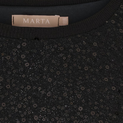 Smuk pallietbluse fra Marta du Château. Den sorte bluse er helt dækket af pallietter, så du virkelig kan skabe et festligt outfit. Perfekt til dig der hellere vil have bukser eller nederdel på til julefrokosten.