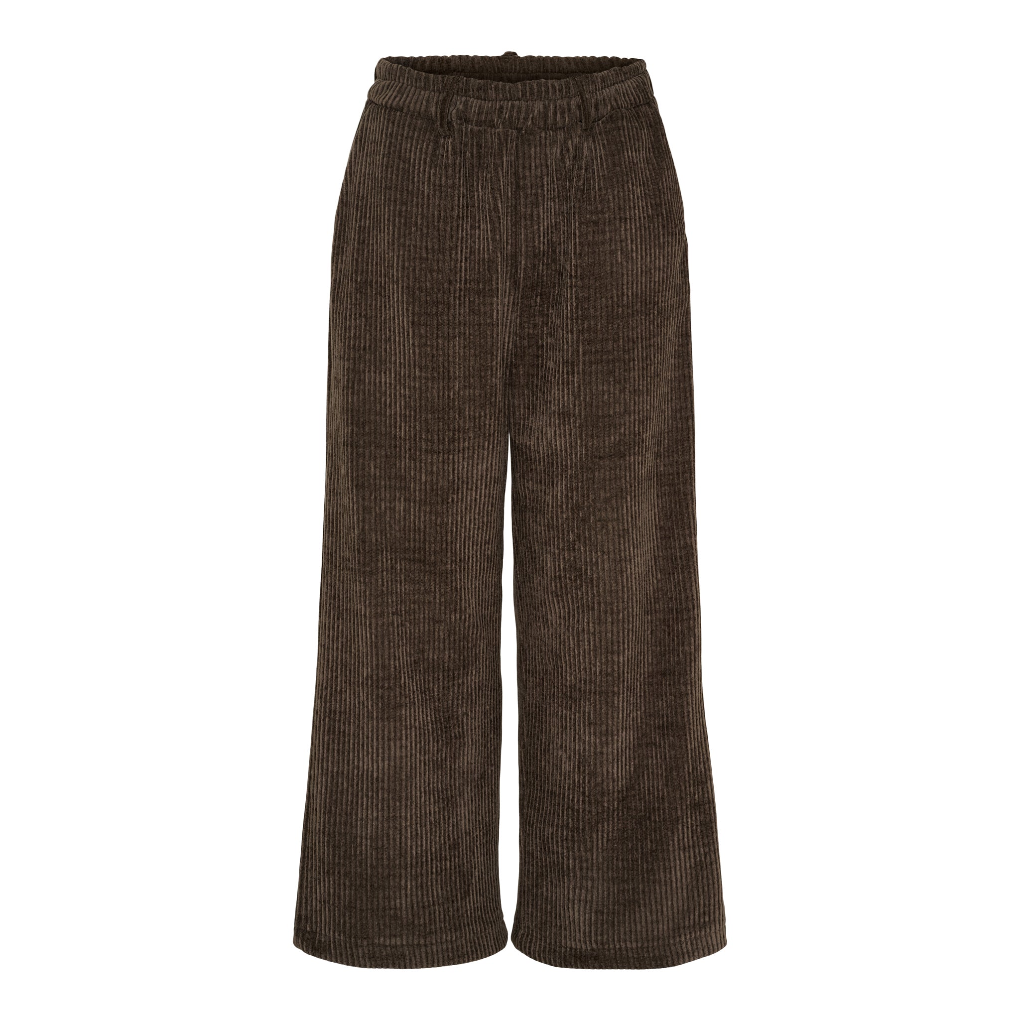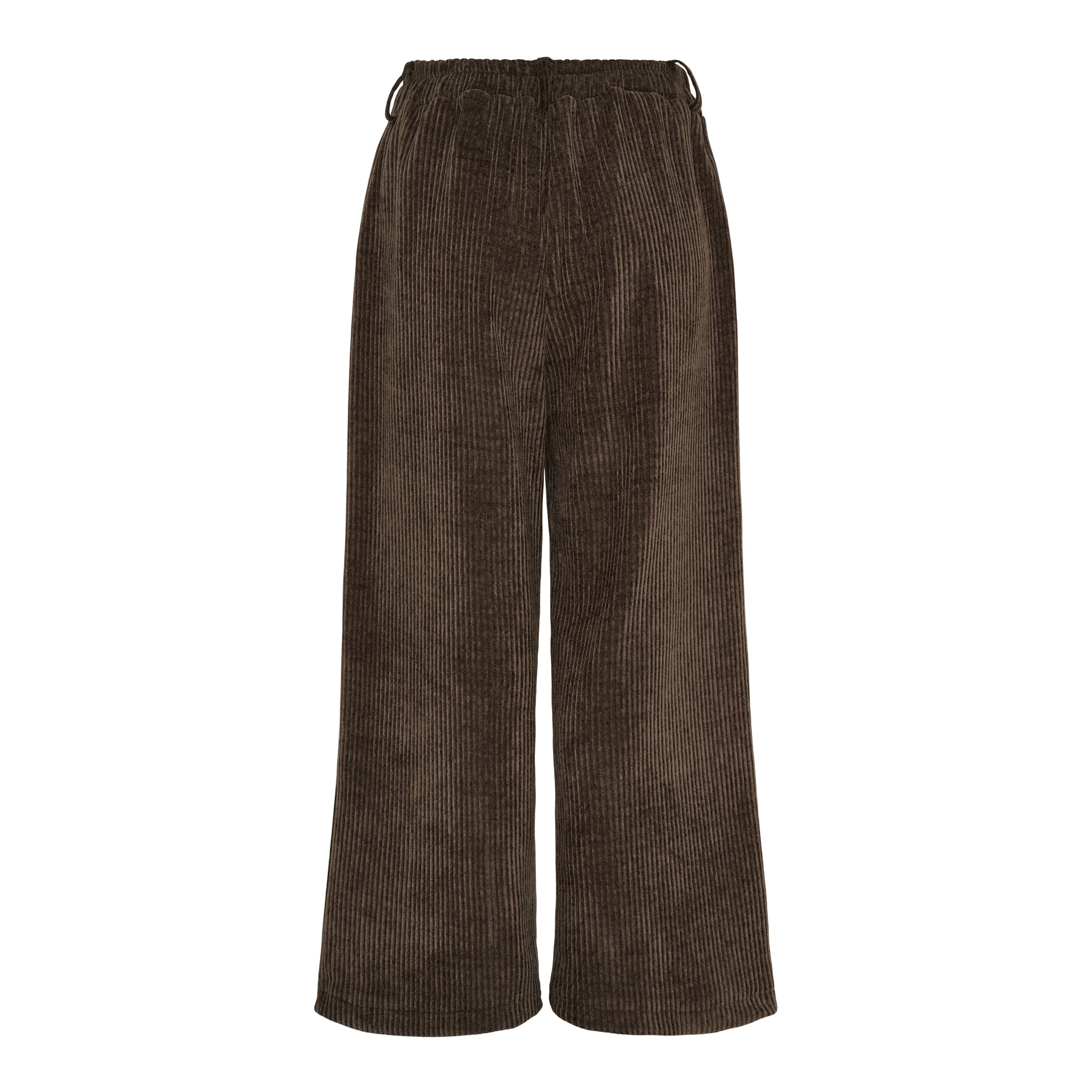 Super lækre fløjlsbukser fra Marta du Château i en flot, mørkebrun farve. Bukserne har god vidde i benene og elastik i linningen. Den grove fløjl giver bukserne et cool look. Style med en hvid skjorte og en strik vest eller en strik kappe.