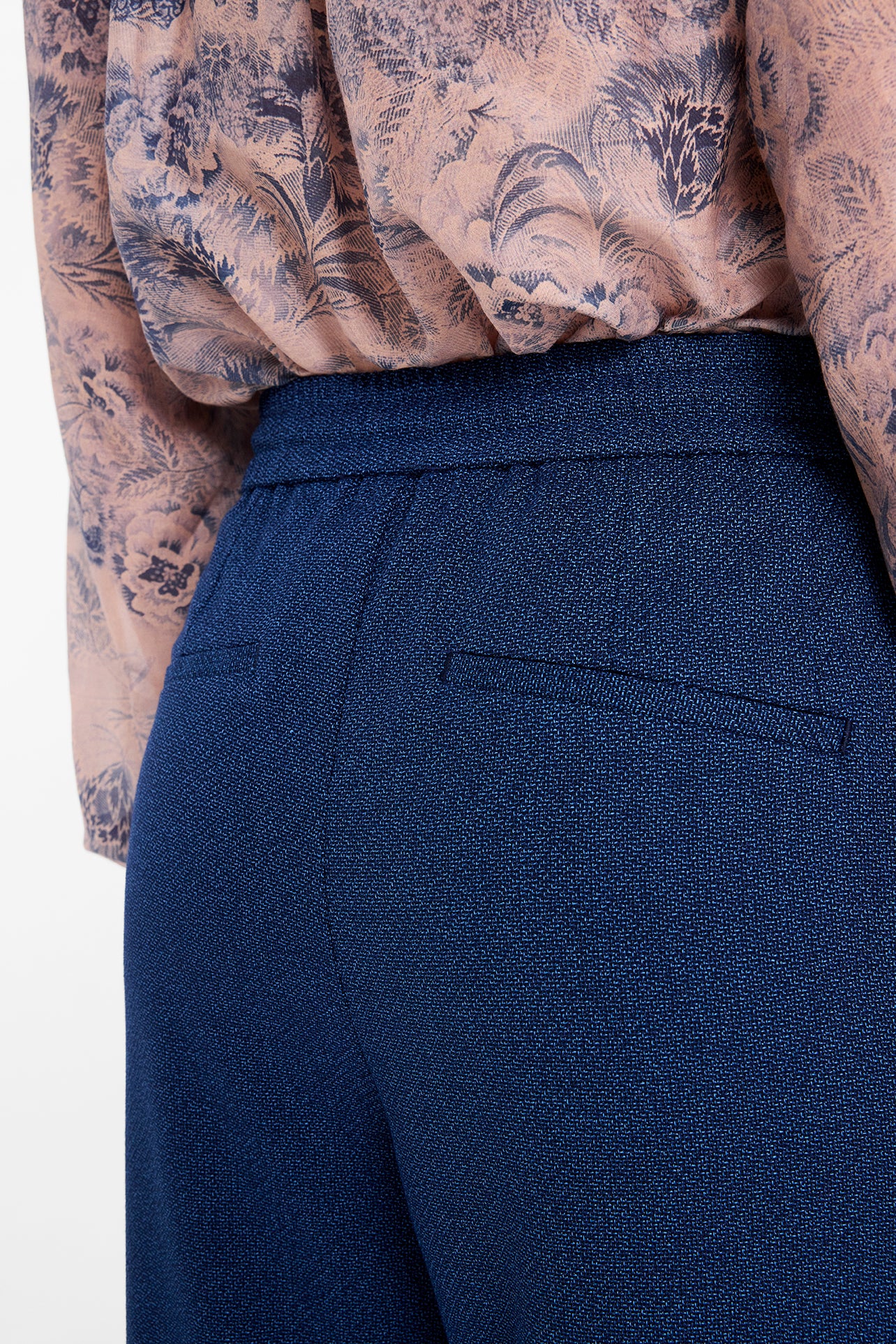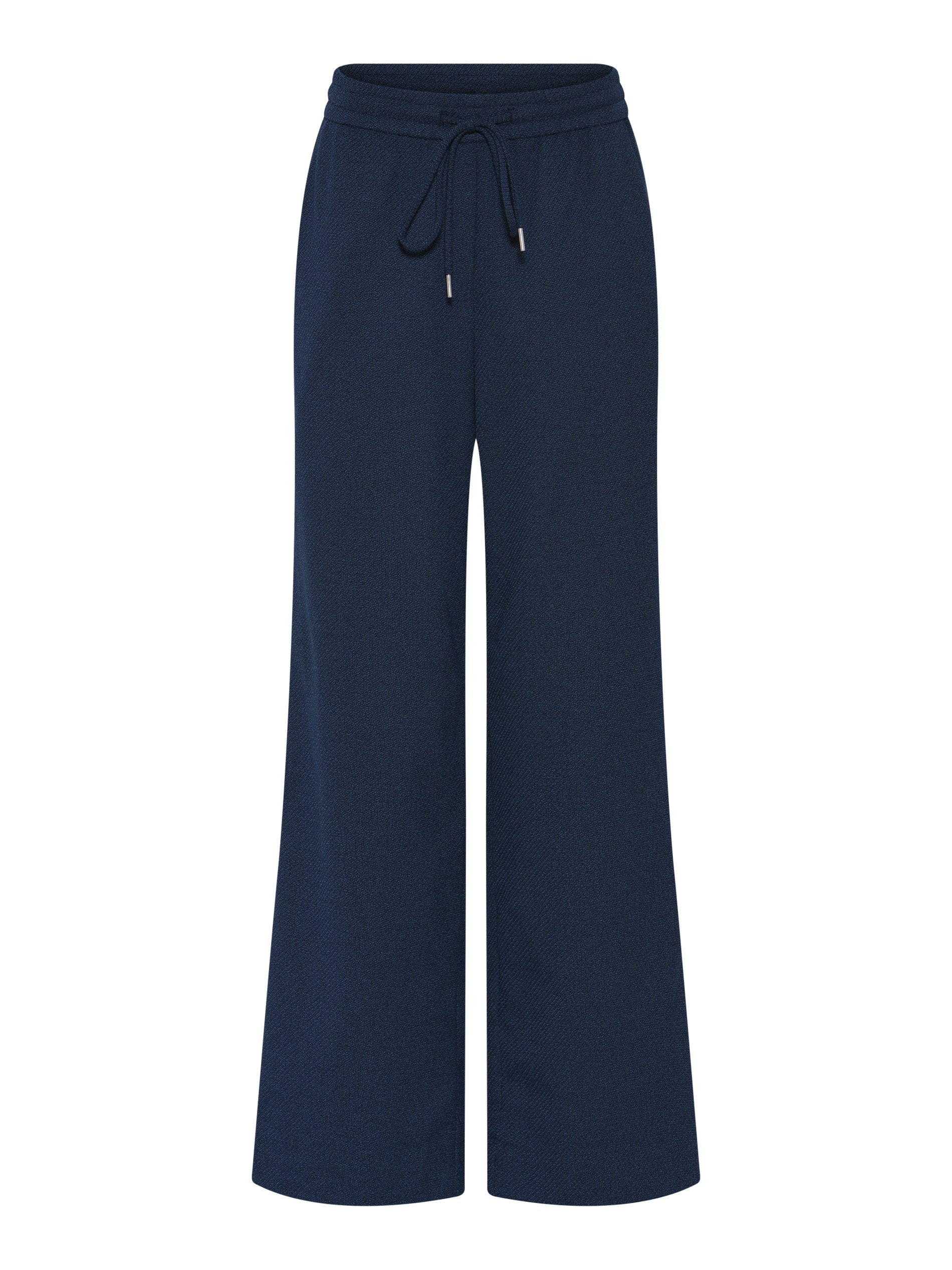 Lækre Gustav bukser i mørkeblå polyester og viskose. Buksen er let nistret i materialet og har elastik og bindebånd i linningen, så du føler dig godt tilpas. De paspolerede baglommer afslutter buksen på flot vis bagpå. Style med den fine Ann Sofie bluse, som du ser på modelbilledet og sæt den matchende Stacie blazer til, hvis du gerne vil have et suit, der passer sammen.