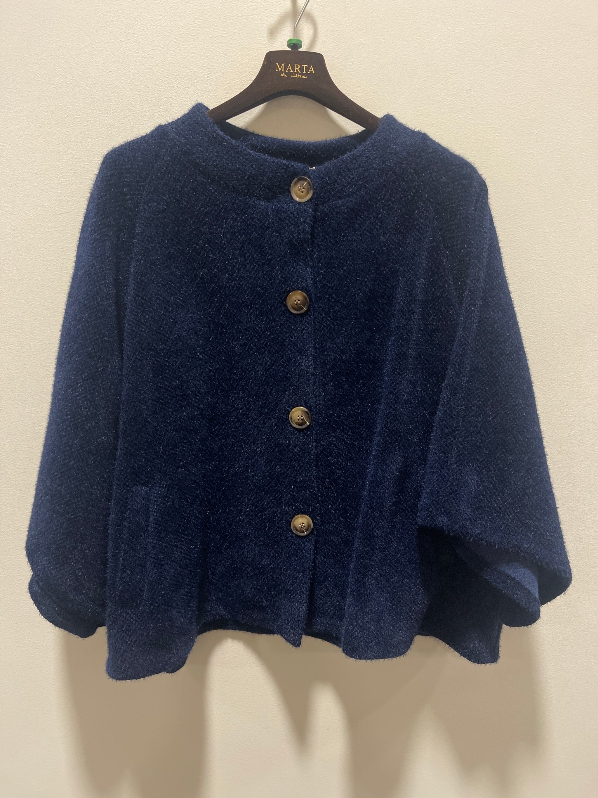 Den populære Thunder kappe fra Marta du Château er kommet i en flot, mørkeblå farve. Kappen er fin at style over en langærmet t-shirt i grå eller off white.