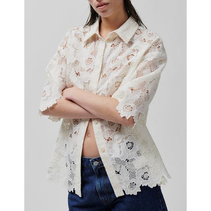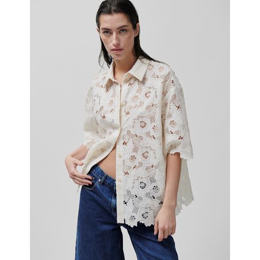 Fin skjorte fra 2nd Day i flot broderie anglaise. Skjorten har korte ærmer med bølget afslutning og en løs pasform, så du føler dig godt tilpas. Style til jeans eller shorts, hvis du gerne vil have et afslappet men stadig feminint outfit.