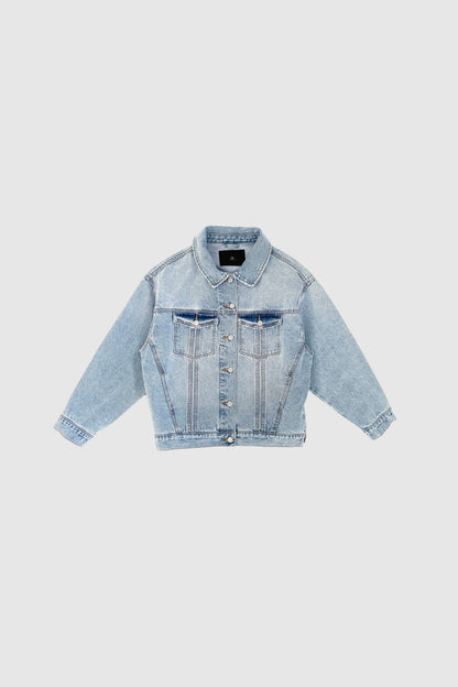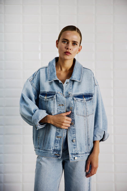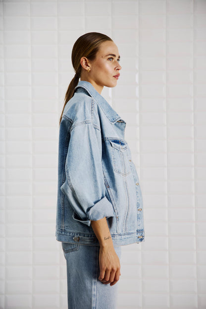 Cool rå denimjakke i et oversize look, med ballonærmer, hvor en fed detalje er at smøge ærmerne op for at give looket mere kant.