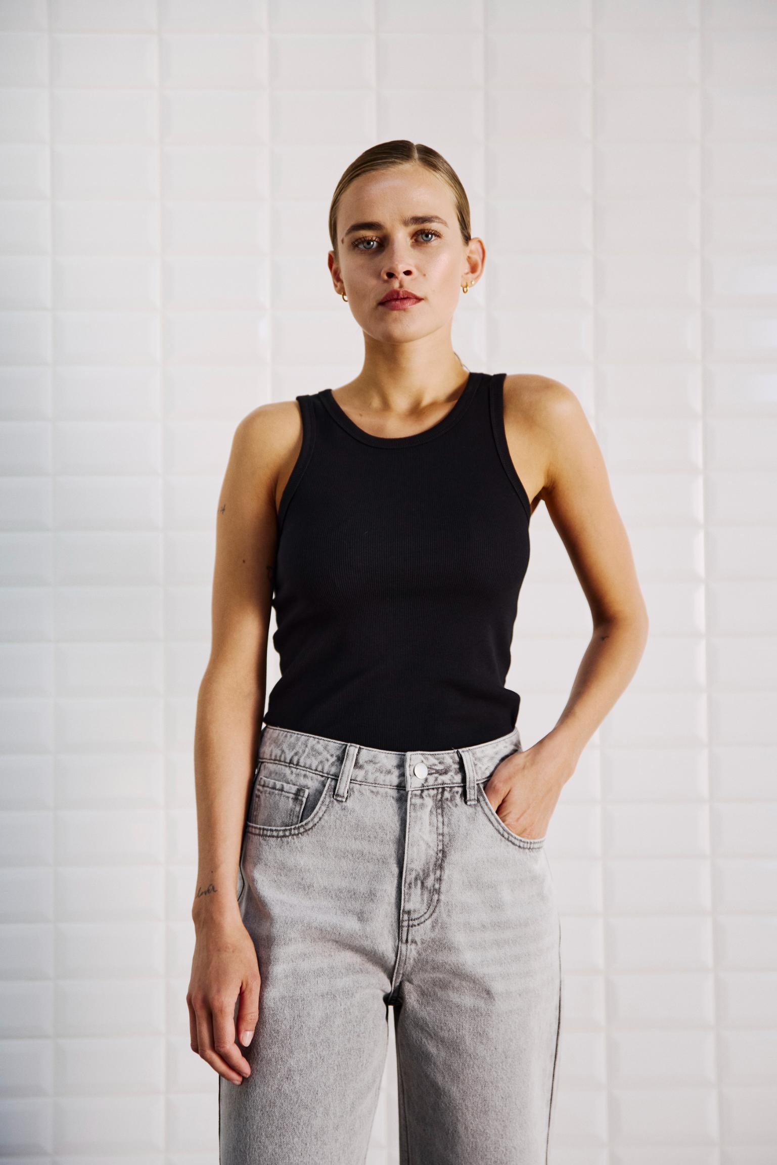 Sort tanktop i rib materiale fra WithBlack.
